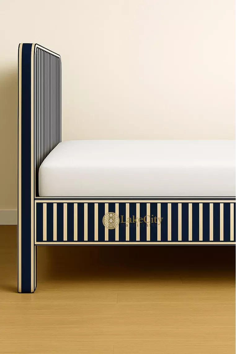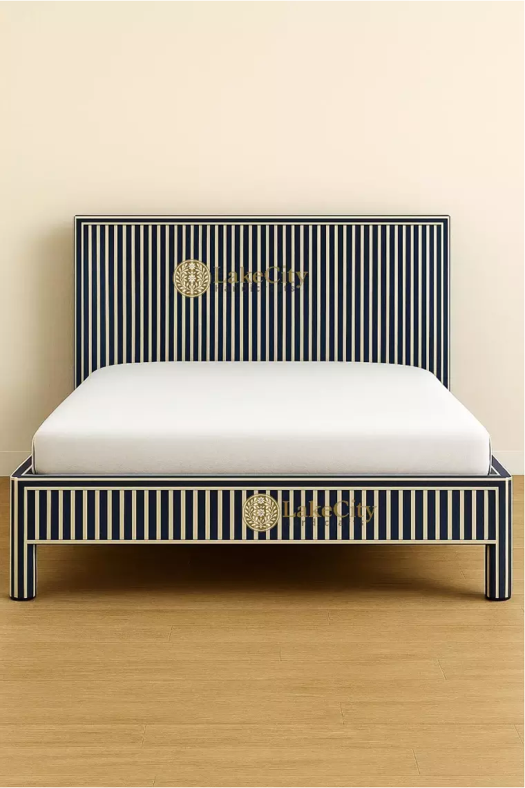 Handmade with perfection, this luxurious bone inlay bed by Lakecity handicrafts is a comfort-seeking piece. Handcrafted using the same centuries-old technique, this inlay bed is a classic piece to build a room around.