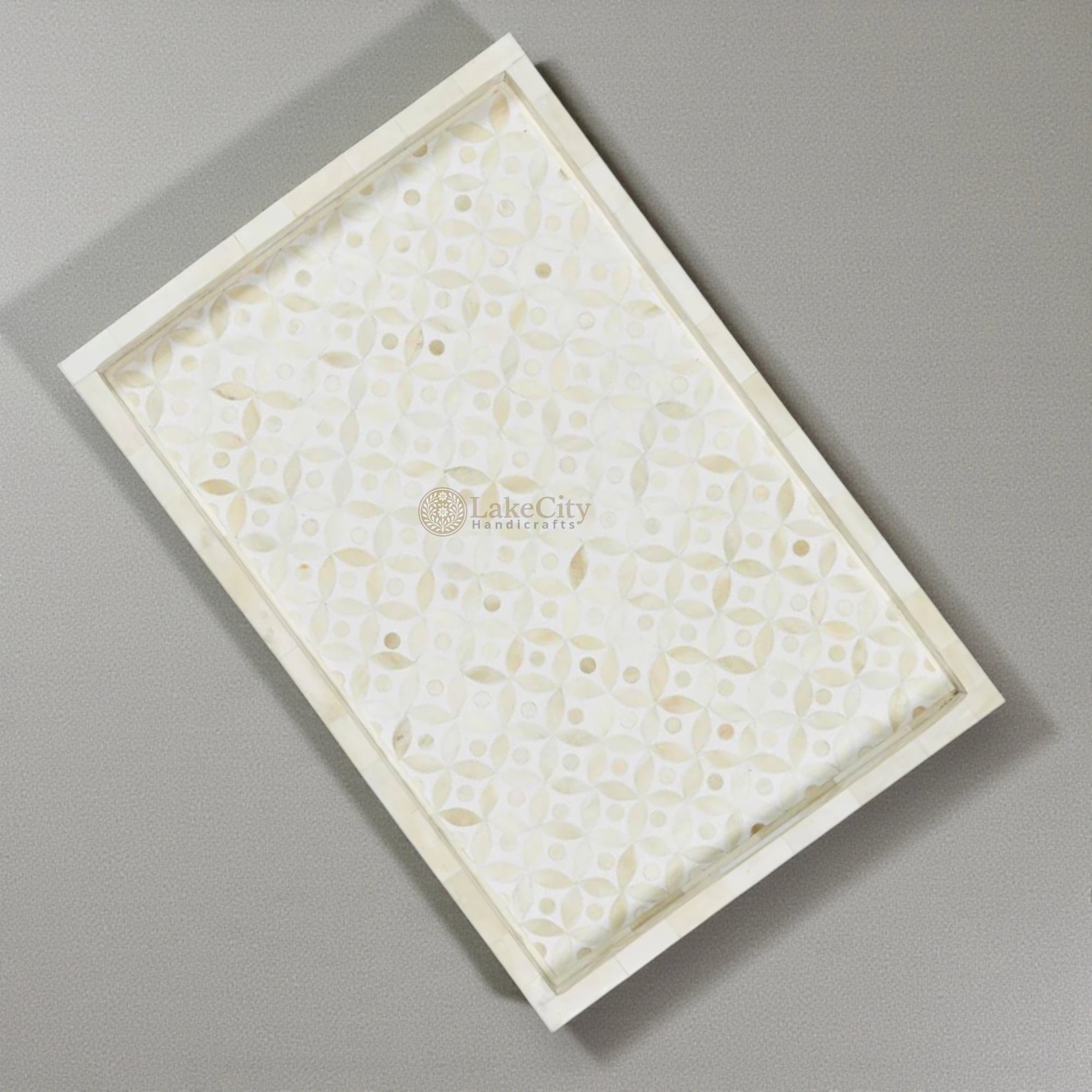 Bone Inlay Tray Geometric Design White 1