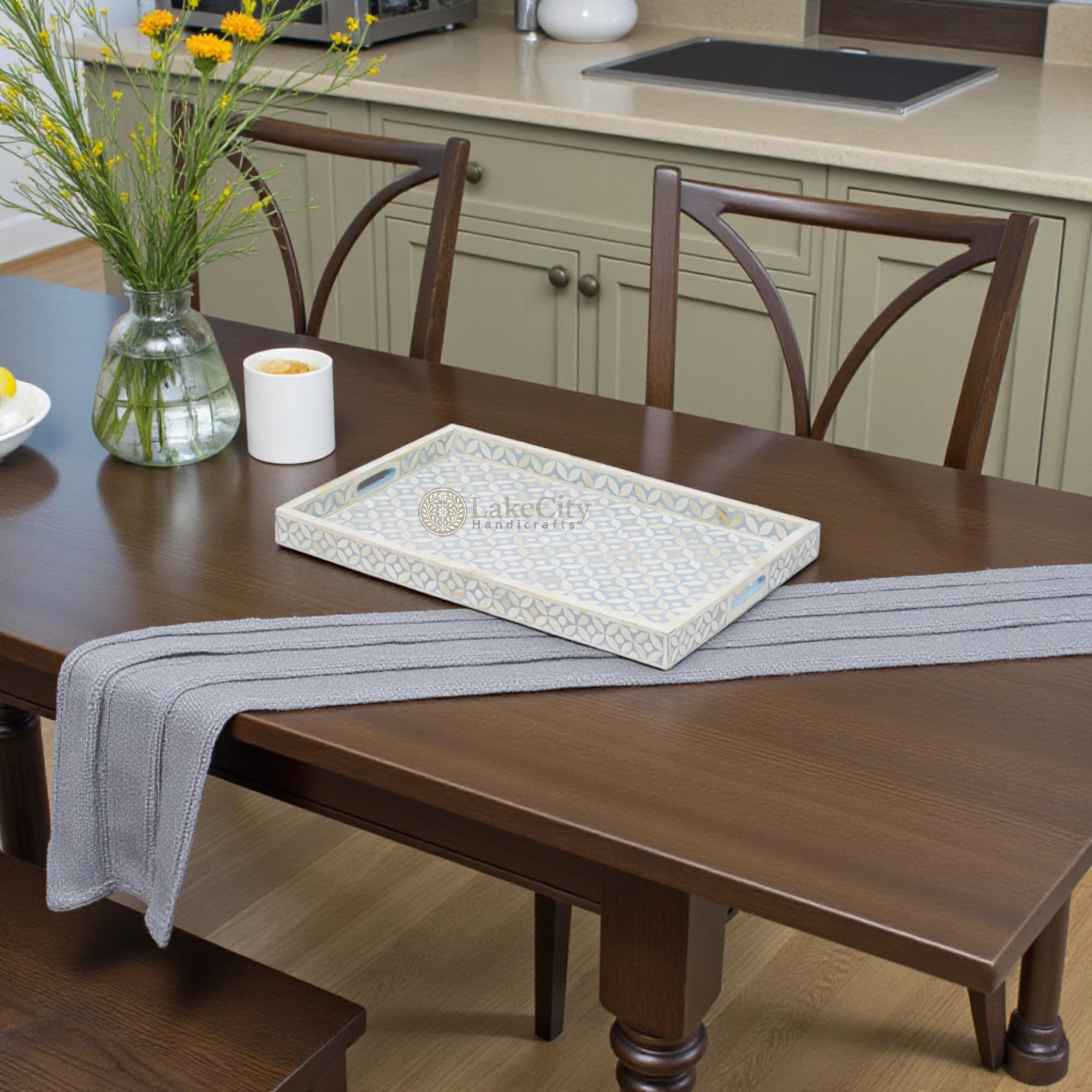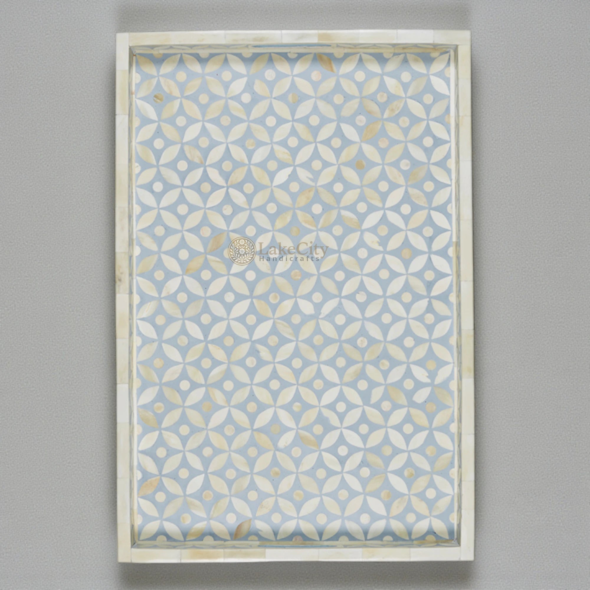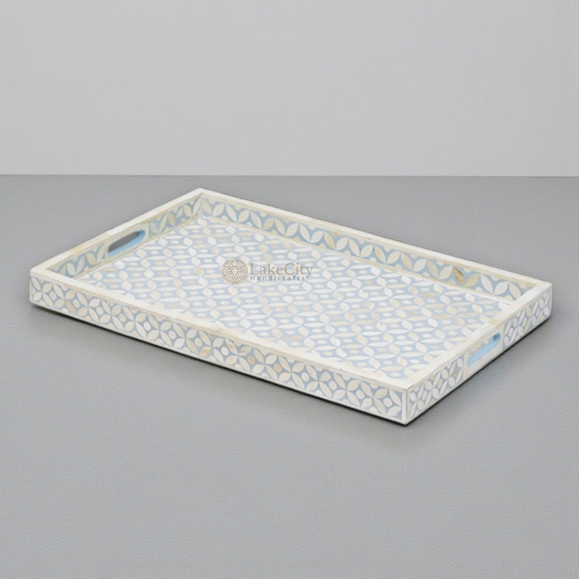 Bone Inlay Tray In Geometric Design Ice Blue
