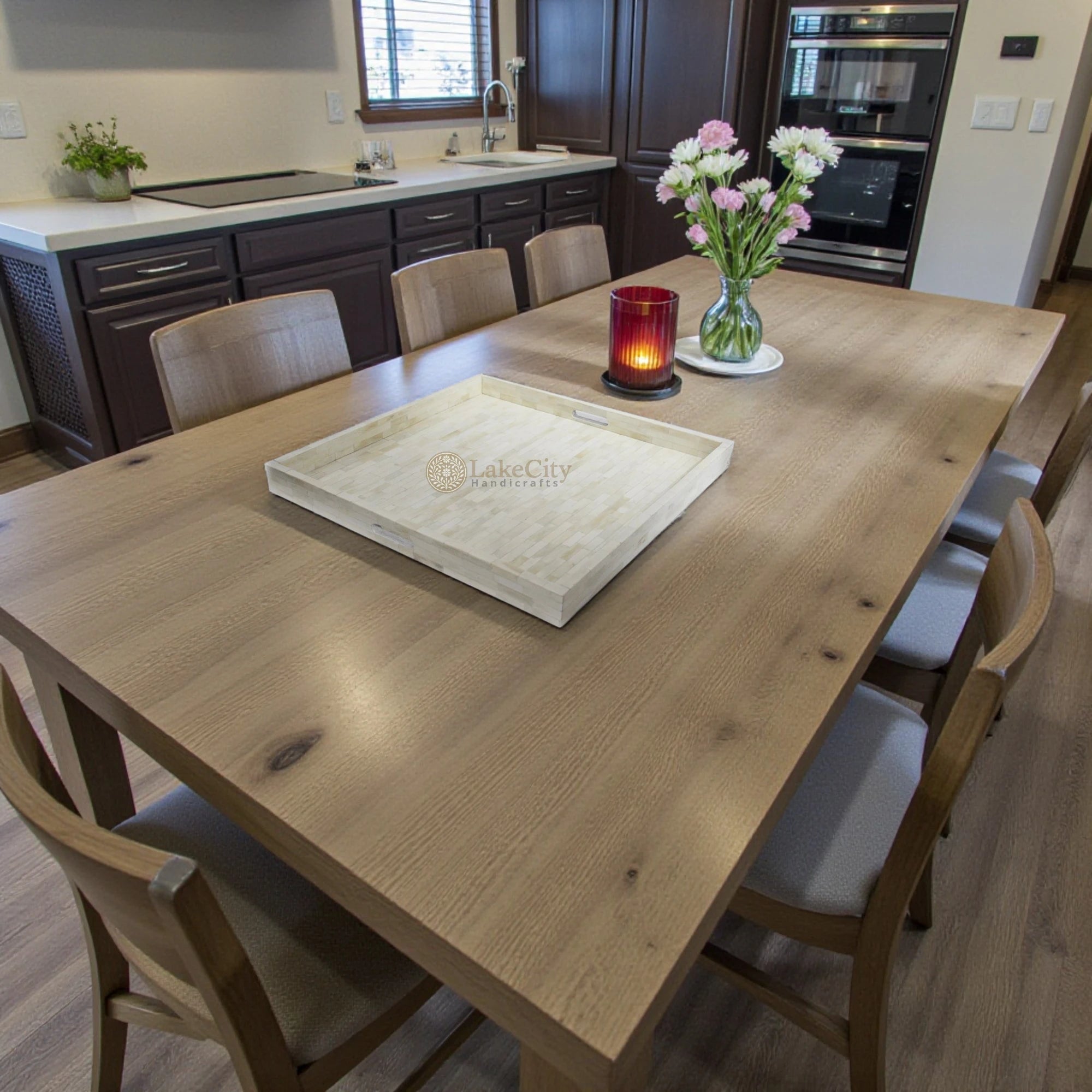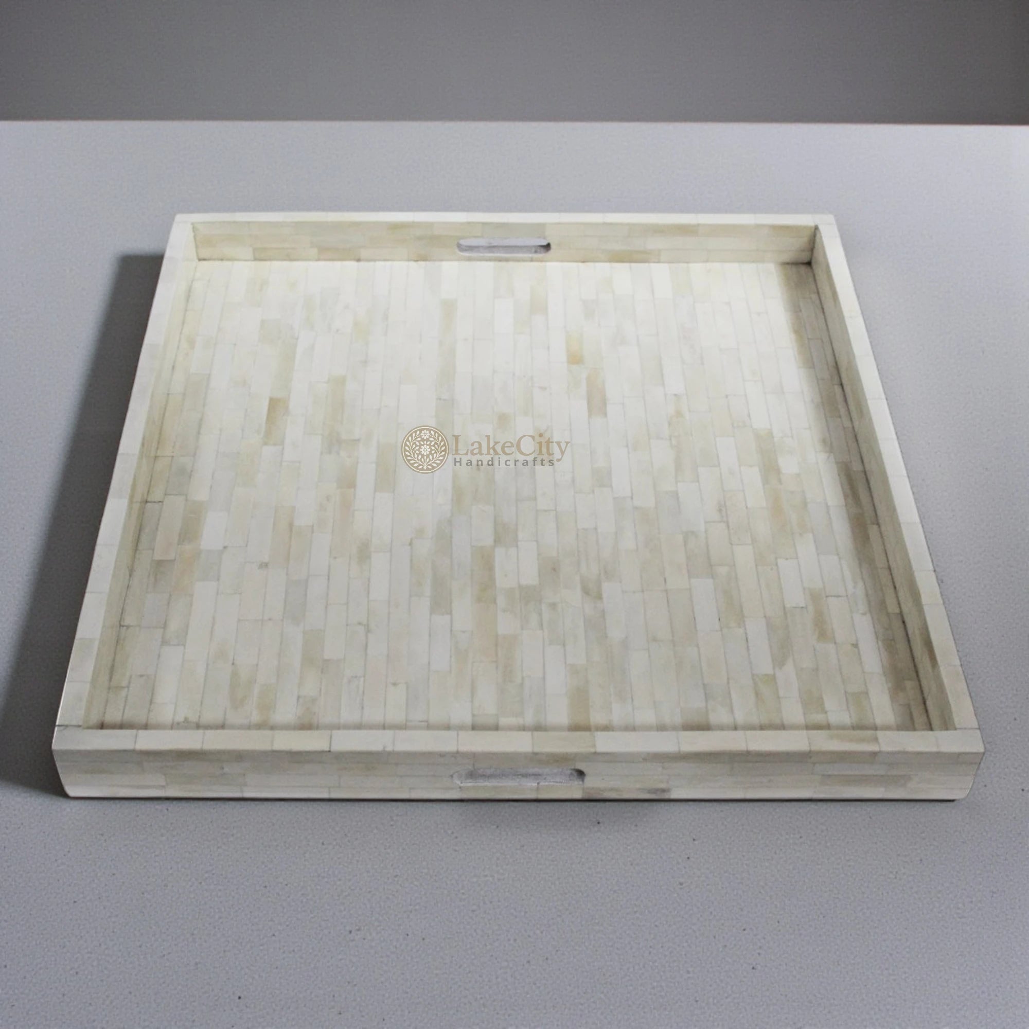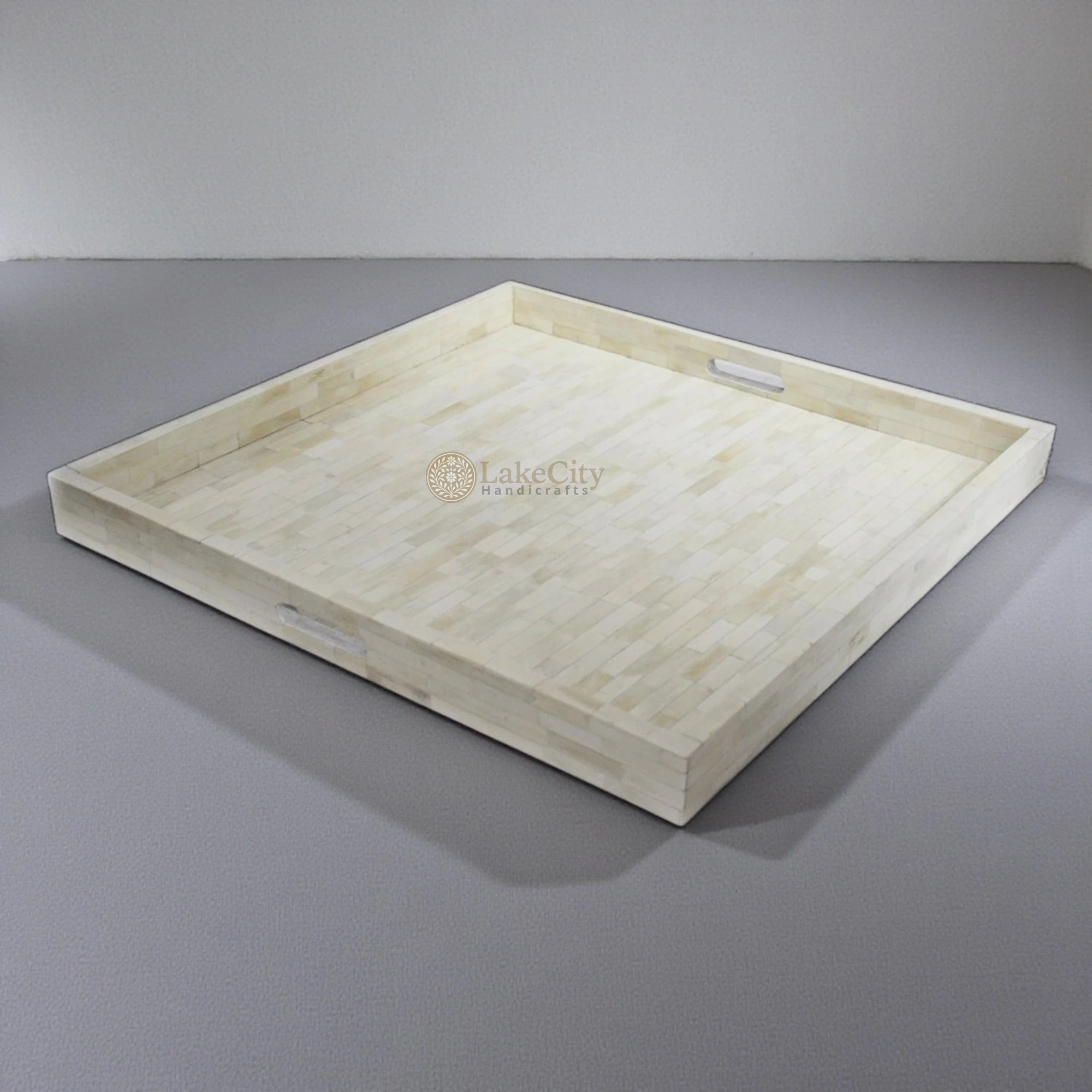 # Intricate brick pattern, clean white bone inlay tray with two handles