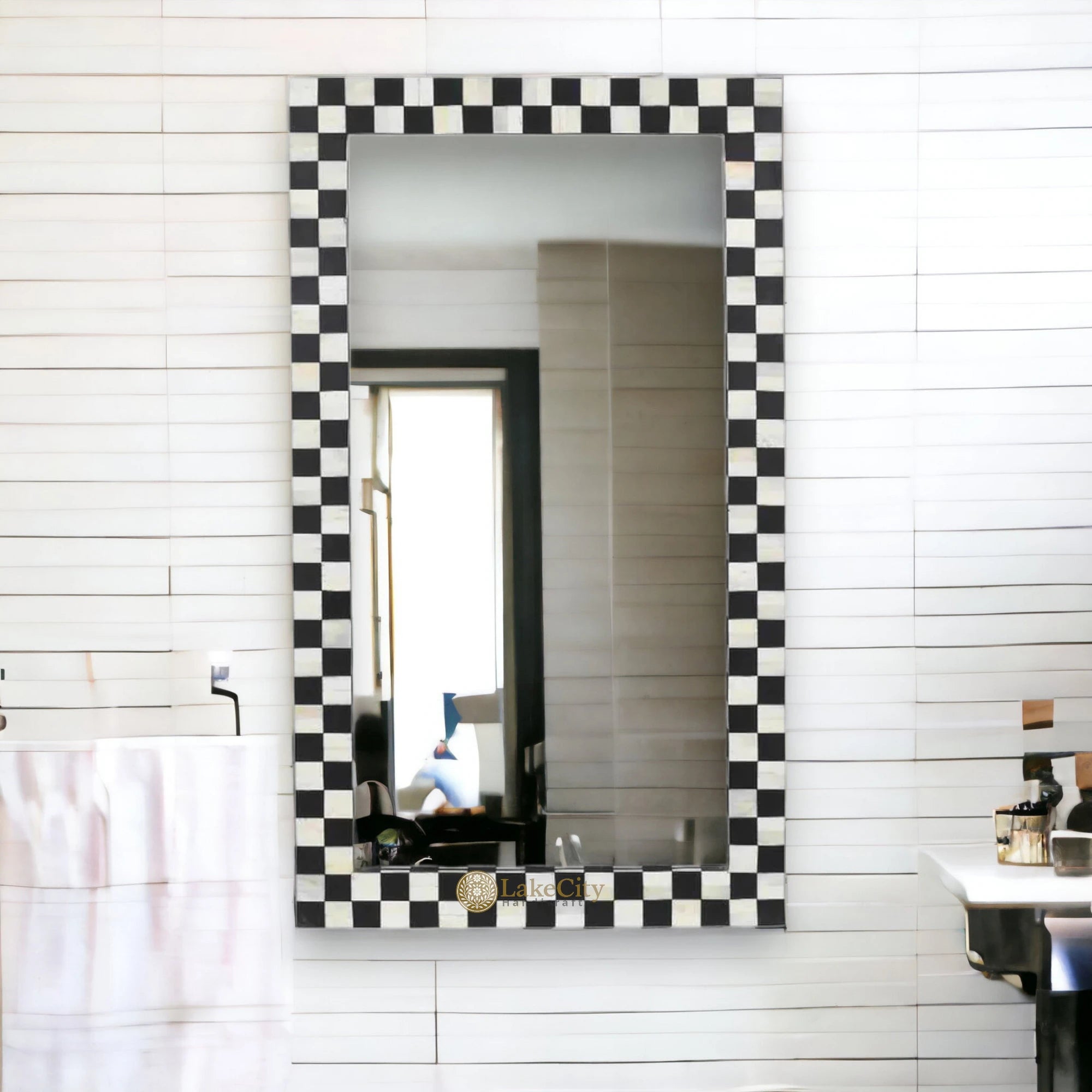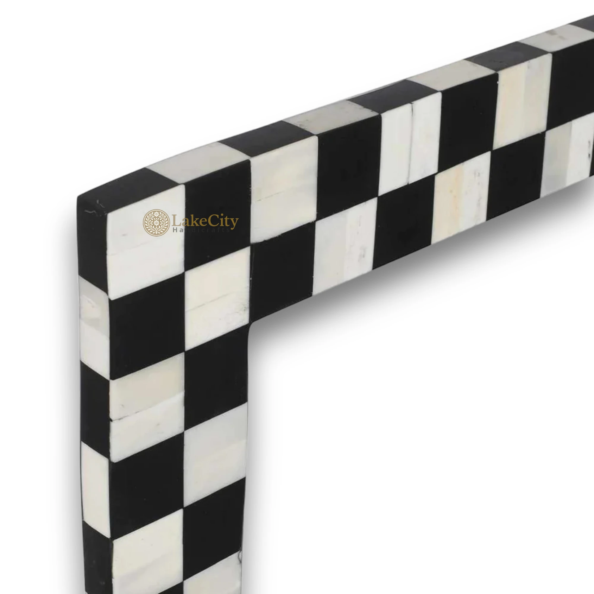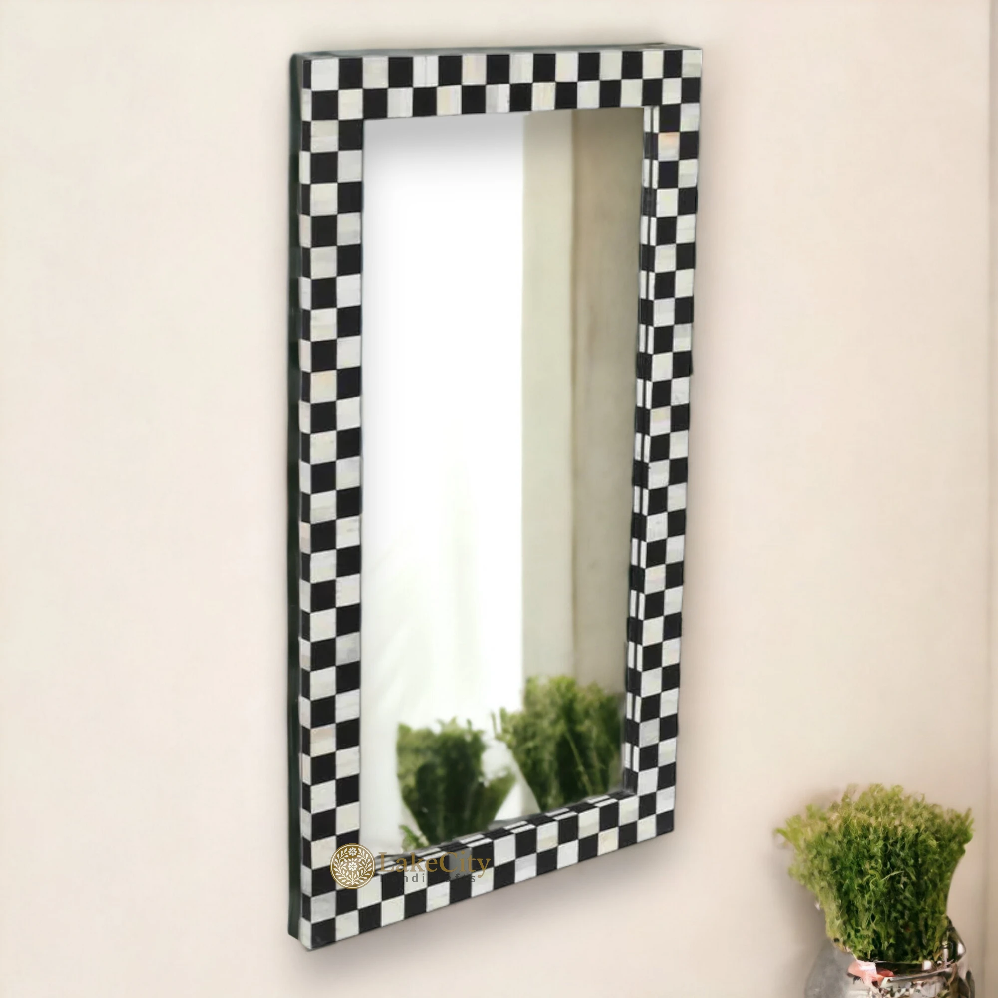 Bone Inlay Checkerboard Design Mirror Frame Black