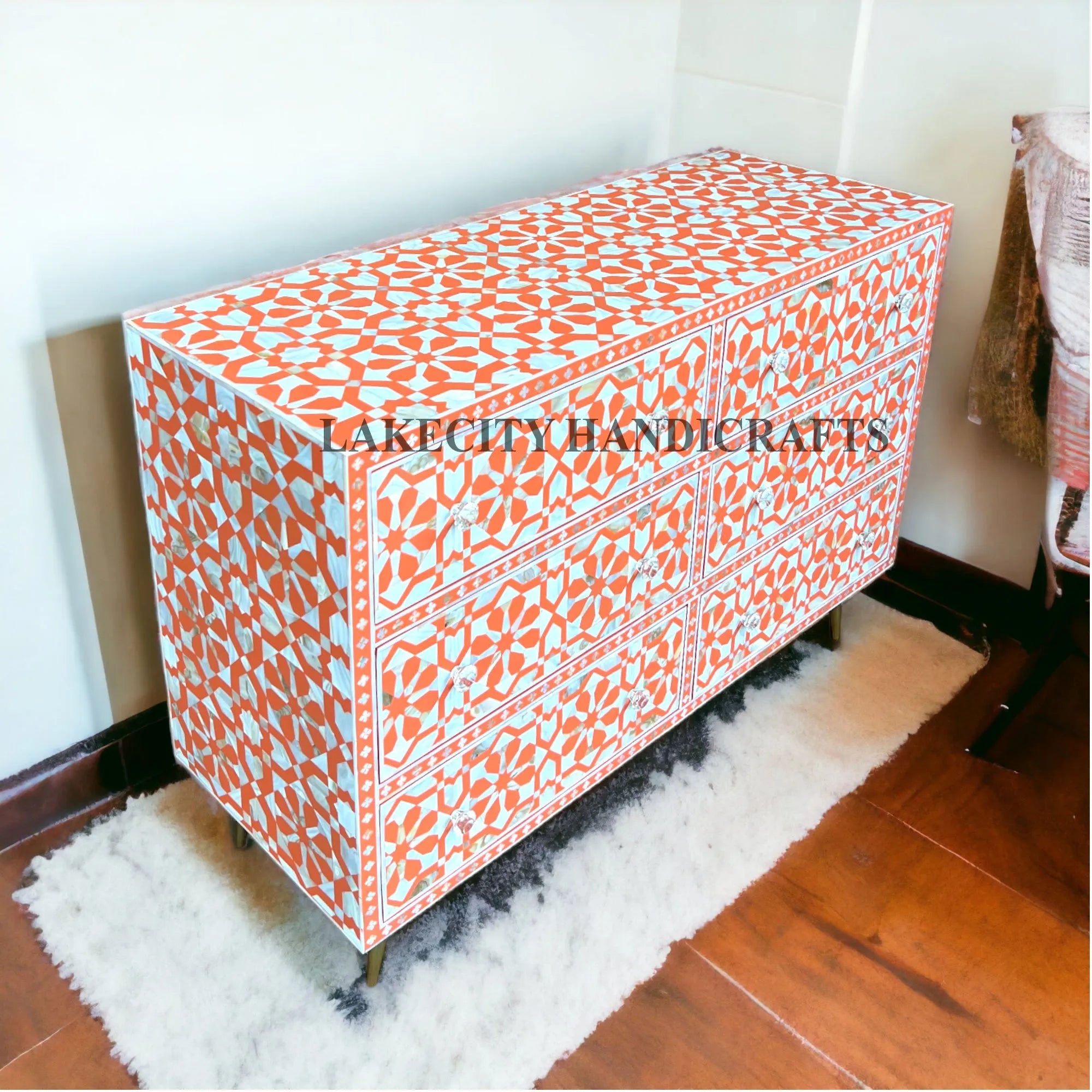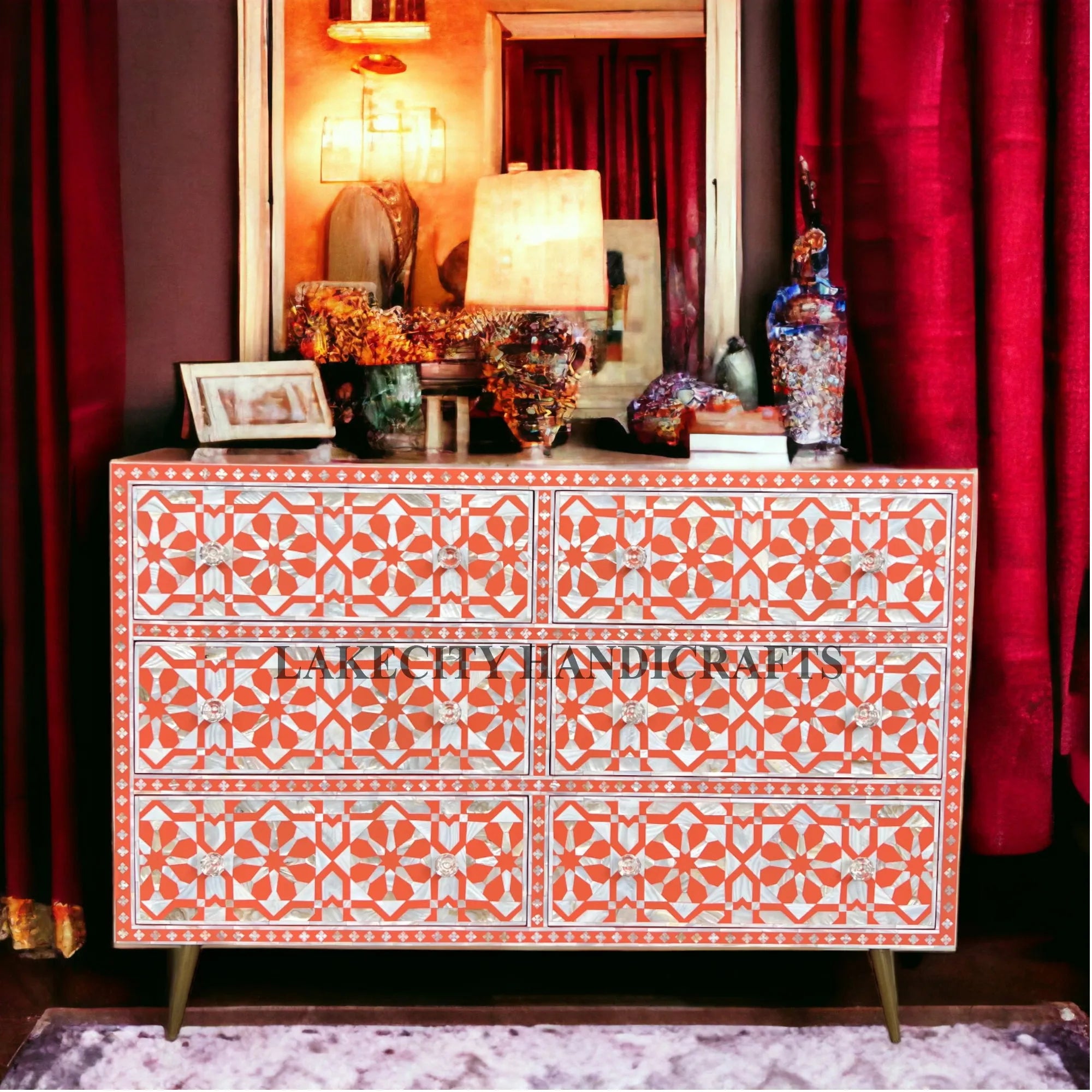 🍊 Brighten up your space with a pop of citrusy goodness! 🍊 Introducing our stunning Orange Chest of Drawers with intricate mop inlay design. 🎨✨ The rich hues and intricate details make this piece a true work of art. Whether you're looking to add a vibrant touch to your bedroom or a splash of color to your living room, this chest of drawers has got you covered.