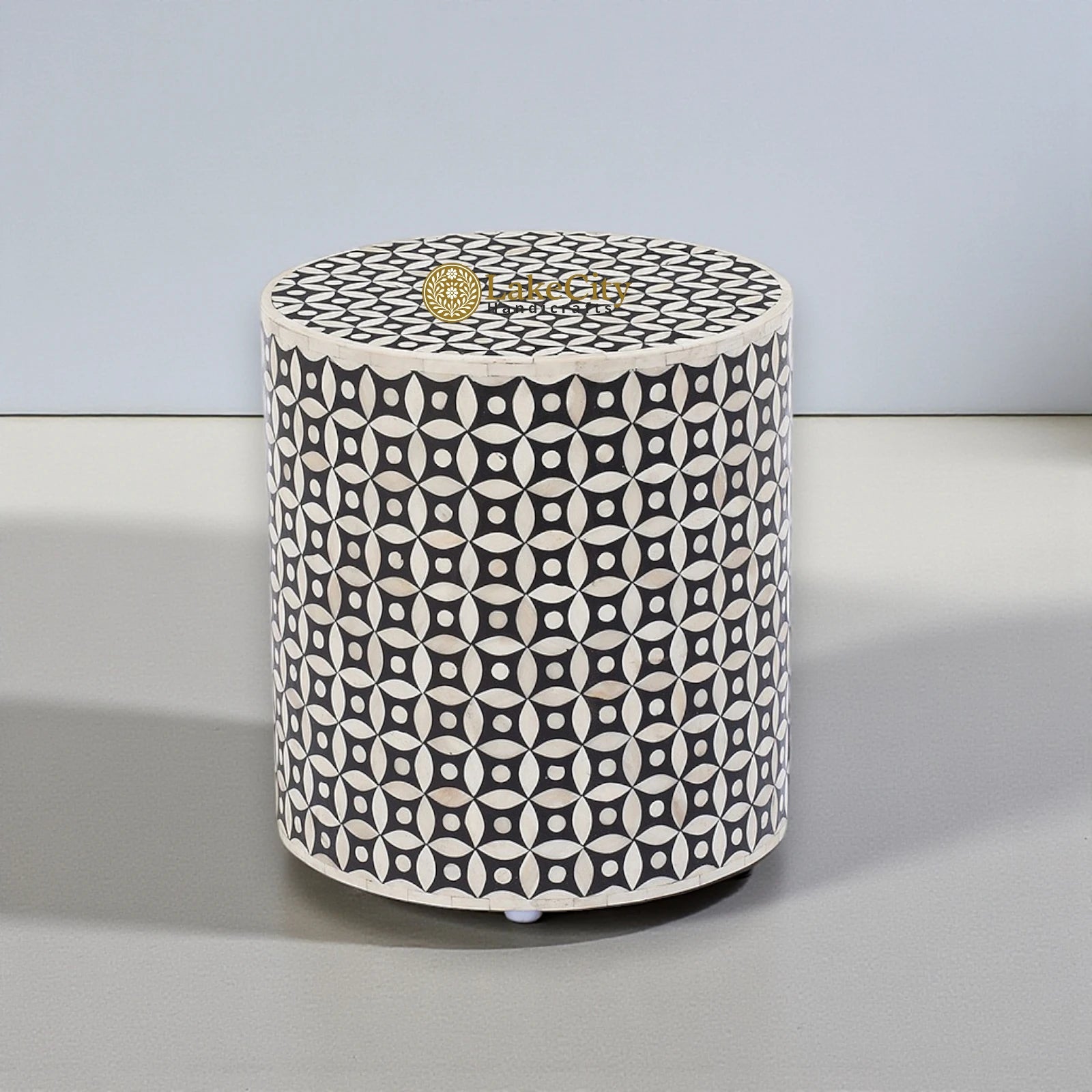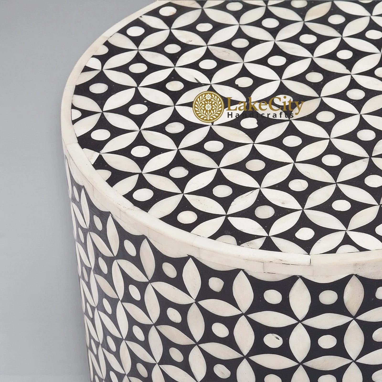 Cada taburete con incrustaciones de hueso ha sido elaborado artesanalmente por hábiles artesanos en la India. Las técnicas tradicionales se complementan con un diseño contemporáneo y ofrecen un punto focal único para su hogar. Fabricado con incrustaciones de hueso, resina compuesta y estructura de madera maciza. Gracias a su proceso artesanal, cada producto es único, lo que lo hace único.