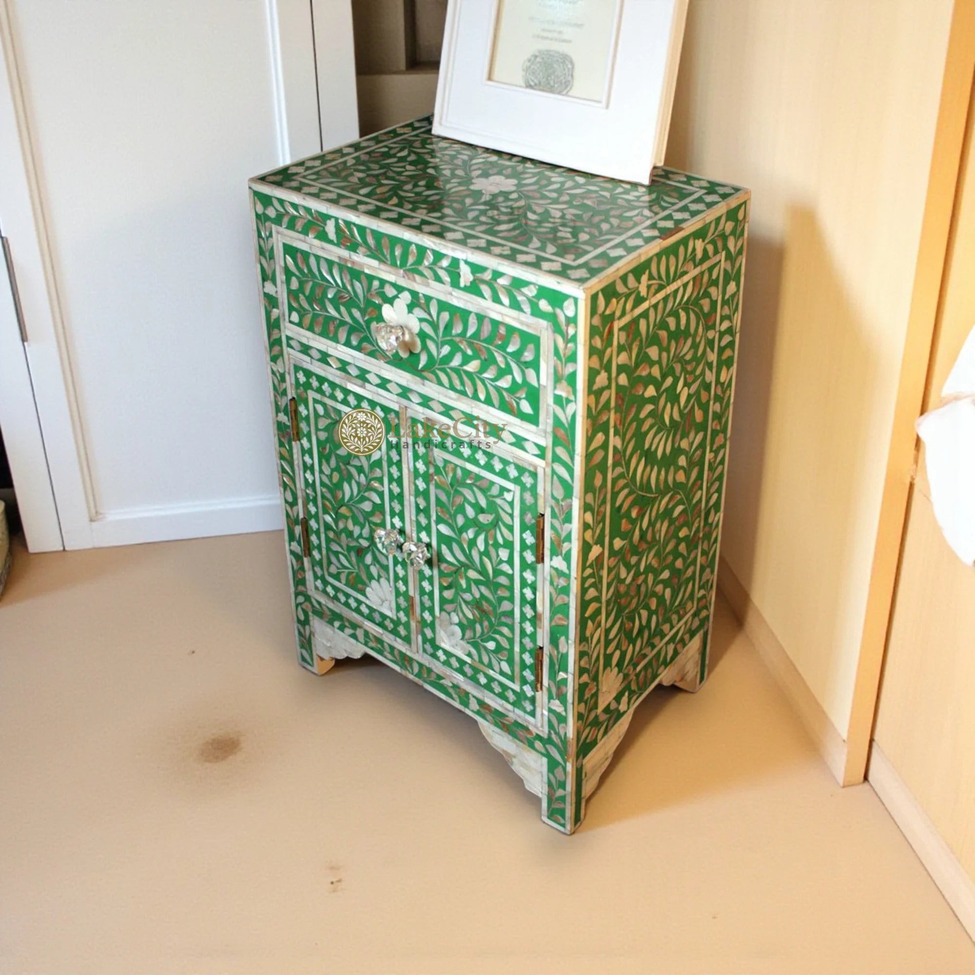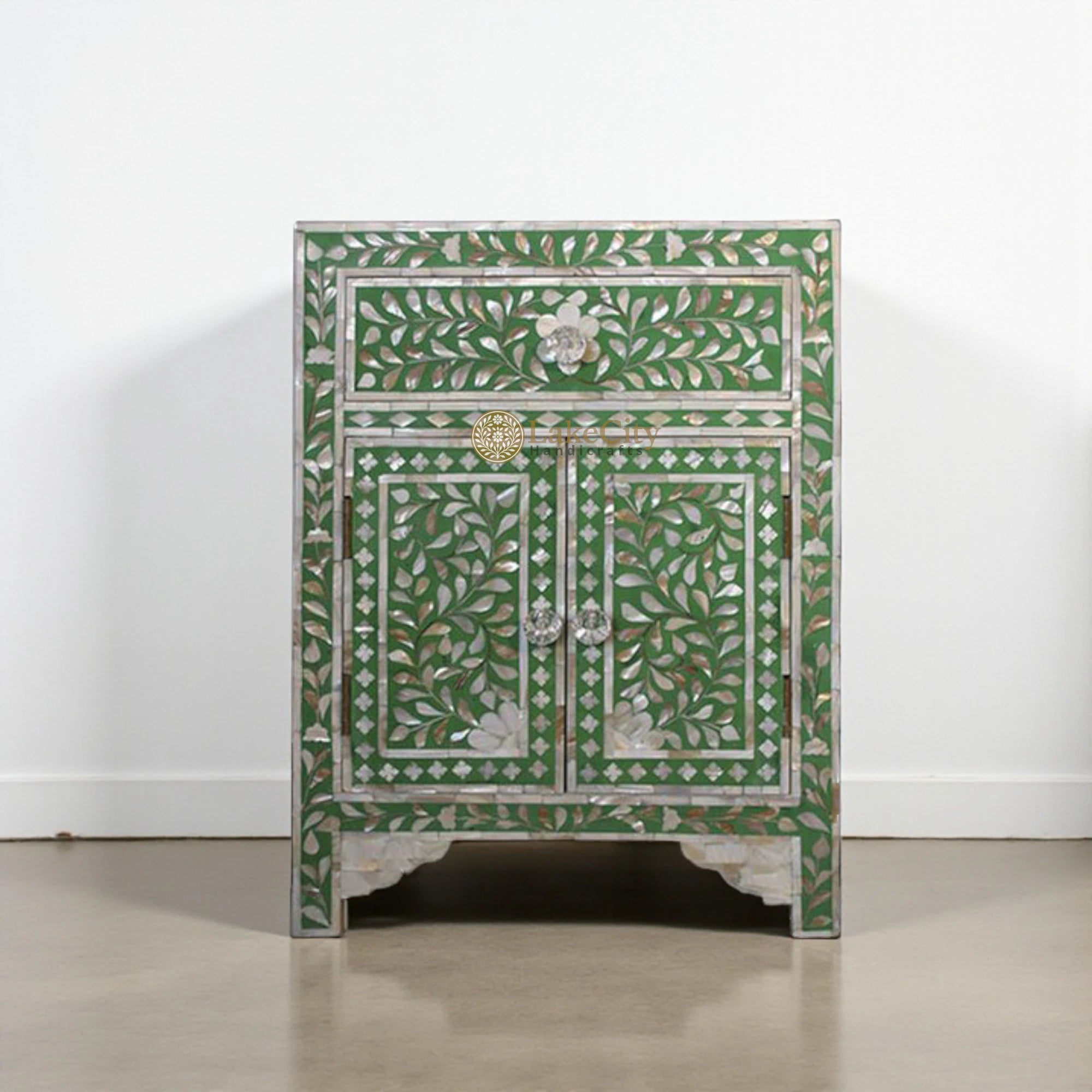 Elegante y lujosa, esta hermosa mesita de noche con incrustaciones de nácar creará un ambiente chic y atemporal en su dormitorio. La incrustación de nácar le da el toque distintivo de un mueble con incrustaciones, con el brillo y el resplandor de cientos de piezas de nácar.