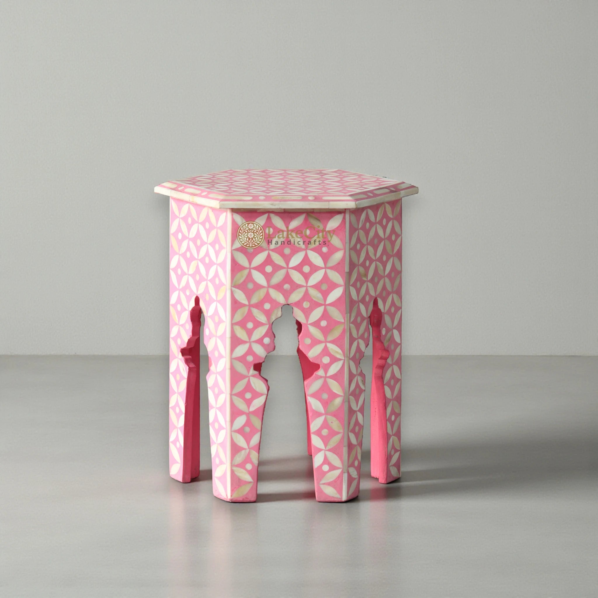Cette petite table d'appoint en marqueterie d'os à structure hexagonale et au design géométrique en marqueterie d'os constituerait un accent parfait dans n'importe quelle pièce.