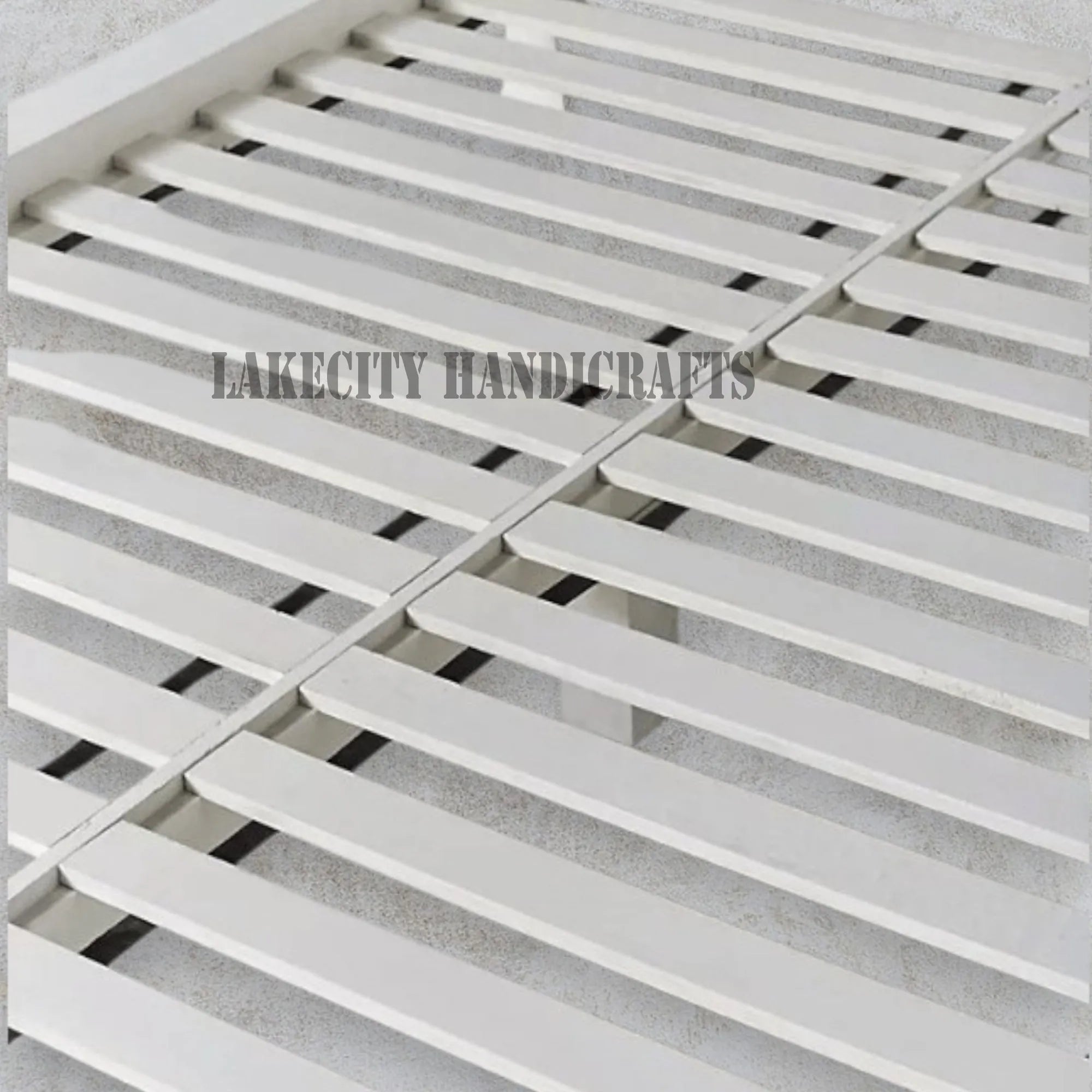 | Sommier à lattes en bois. Ne nécessite pas de sommier tapissier. |