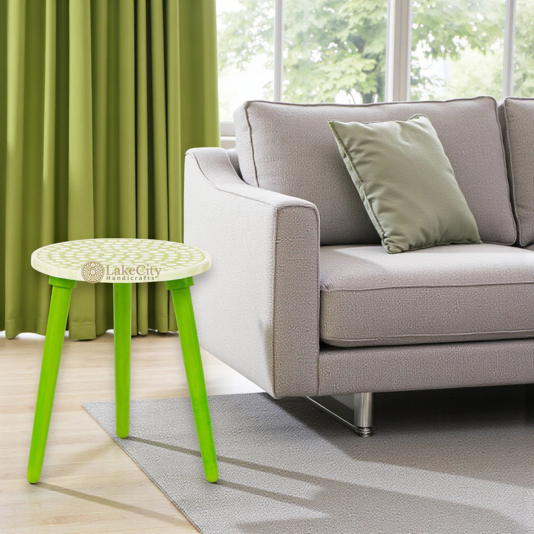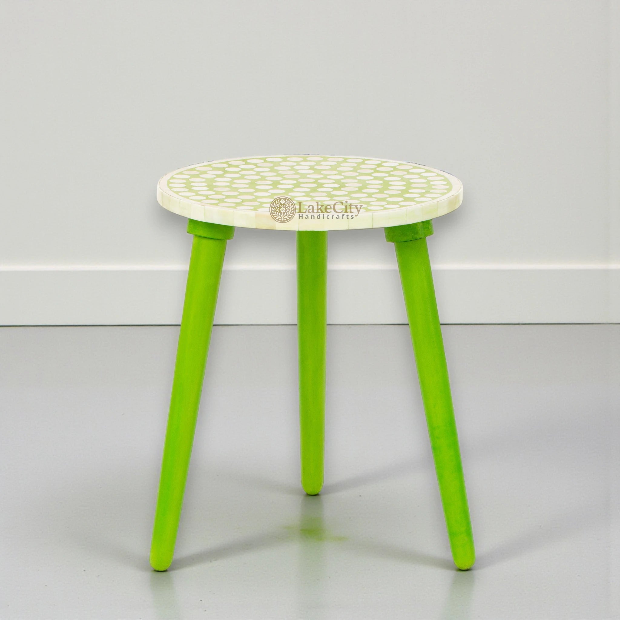 Bone Inlay Side Table Polka Dot Lime Green