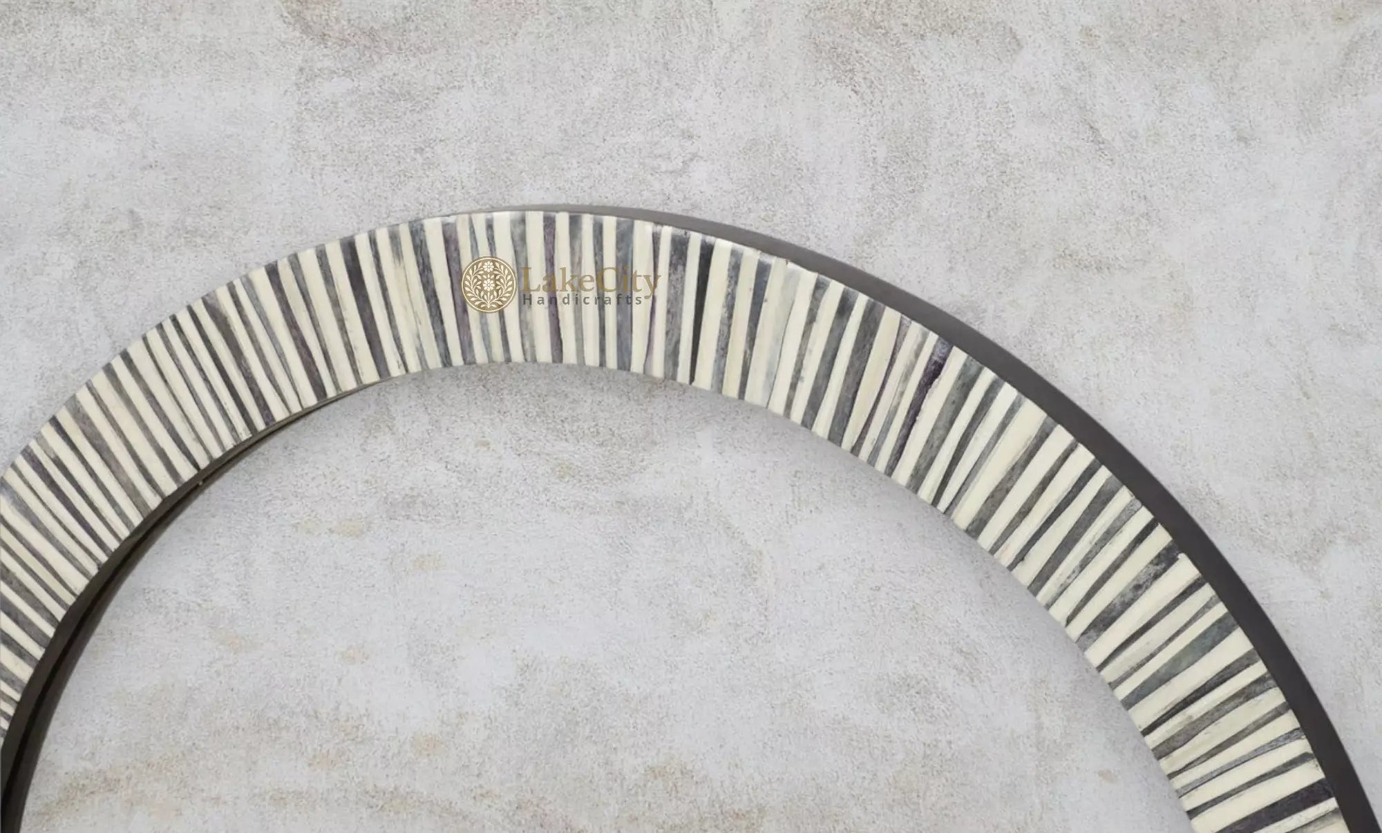 Design: Striped pattern made from natural bone inlay, often combined with a grey color palette for a modern touch.