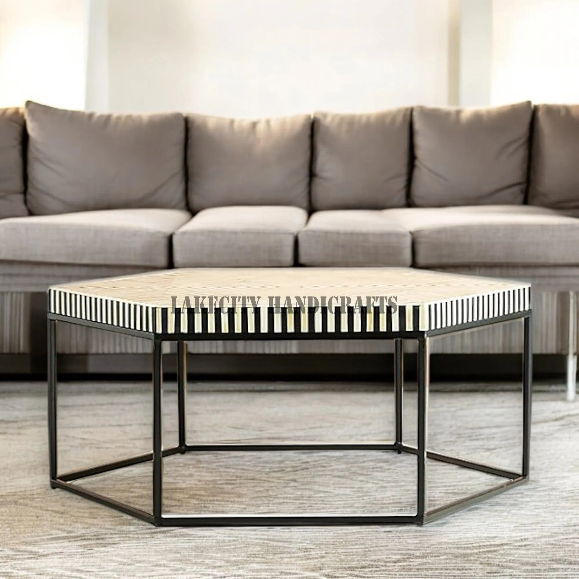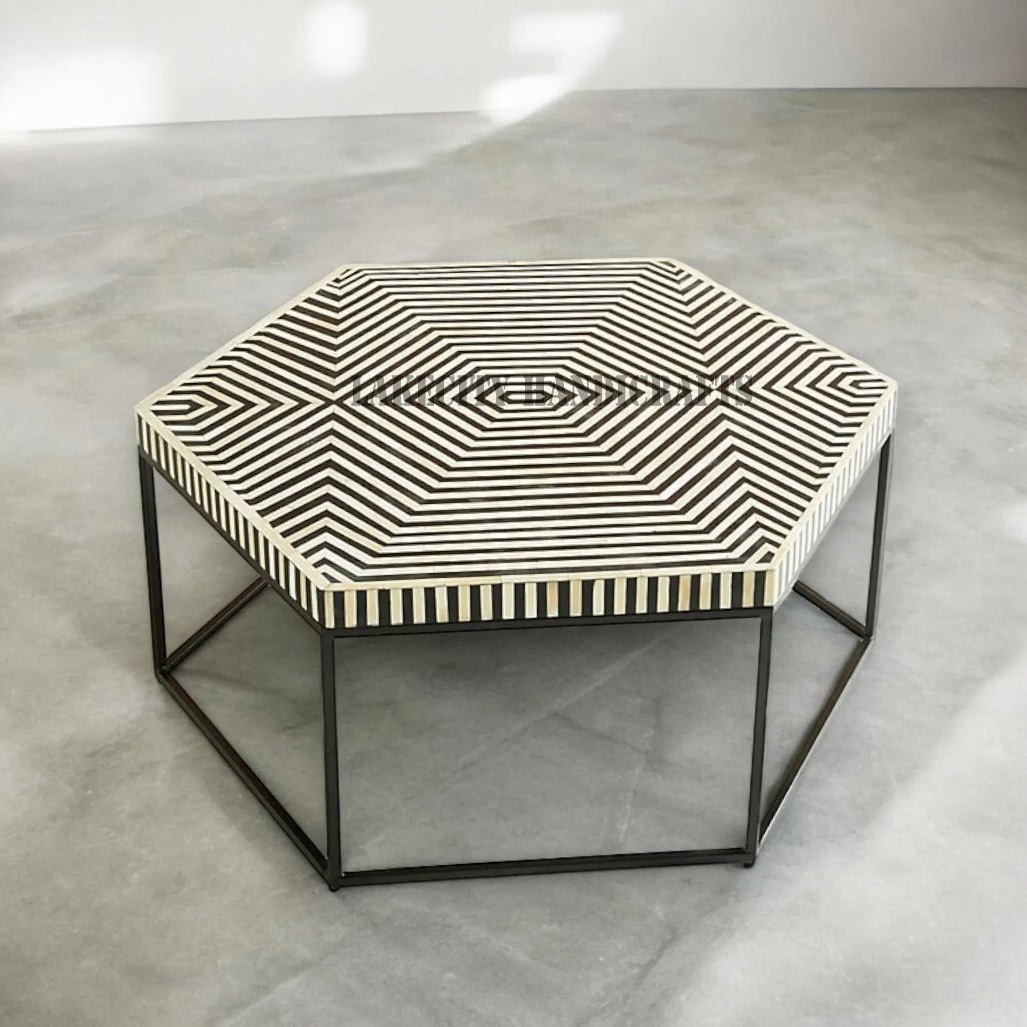 Smartly designed coffee table which is more than just mere tables in the corner. The luxurious golden touch on the metal makes it an attractive statement in your living room, bedroom or study. Hexagonal bone inlay on the top is more like the cherry on top which imparts that essential wholesome look to the table.