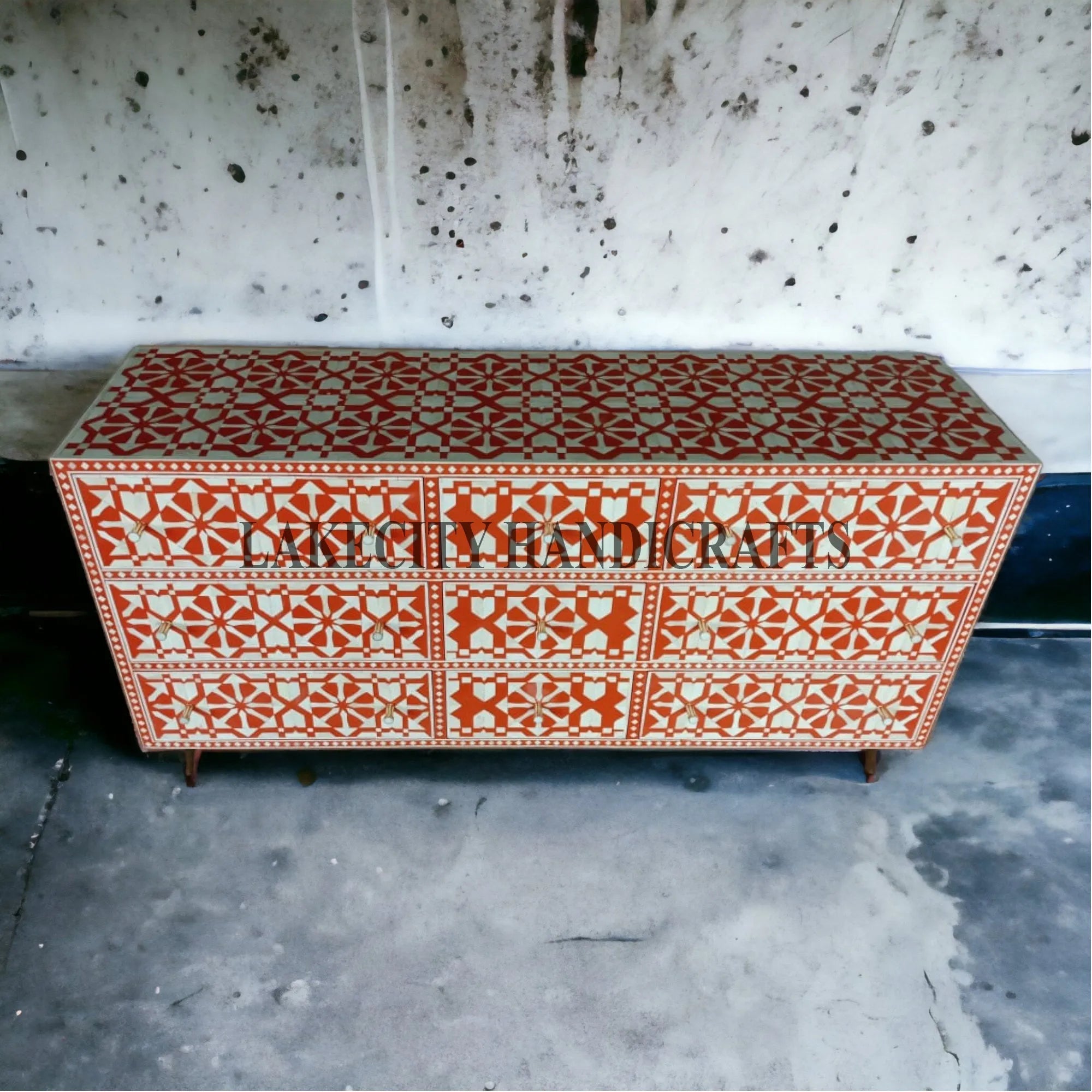 | Handcrafted Moroccan colored and white bone inlay nine-drawer dresser |