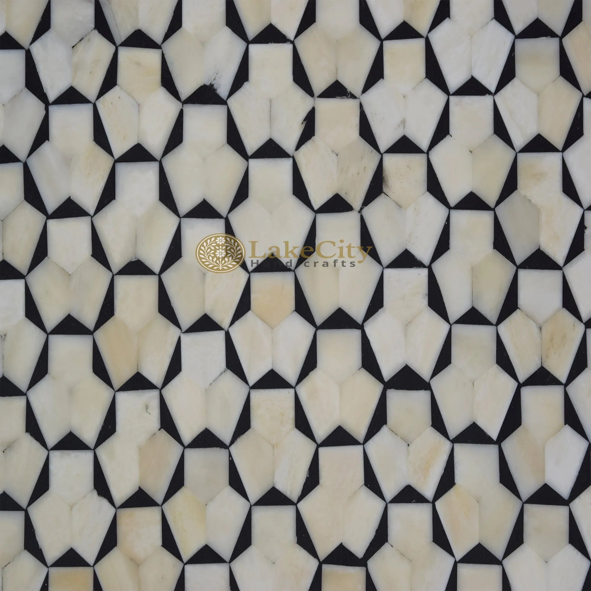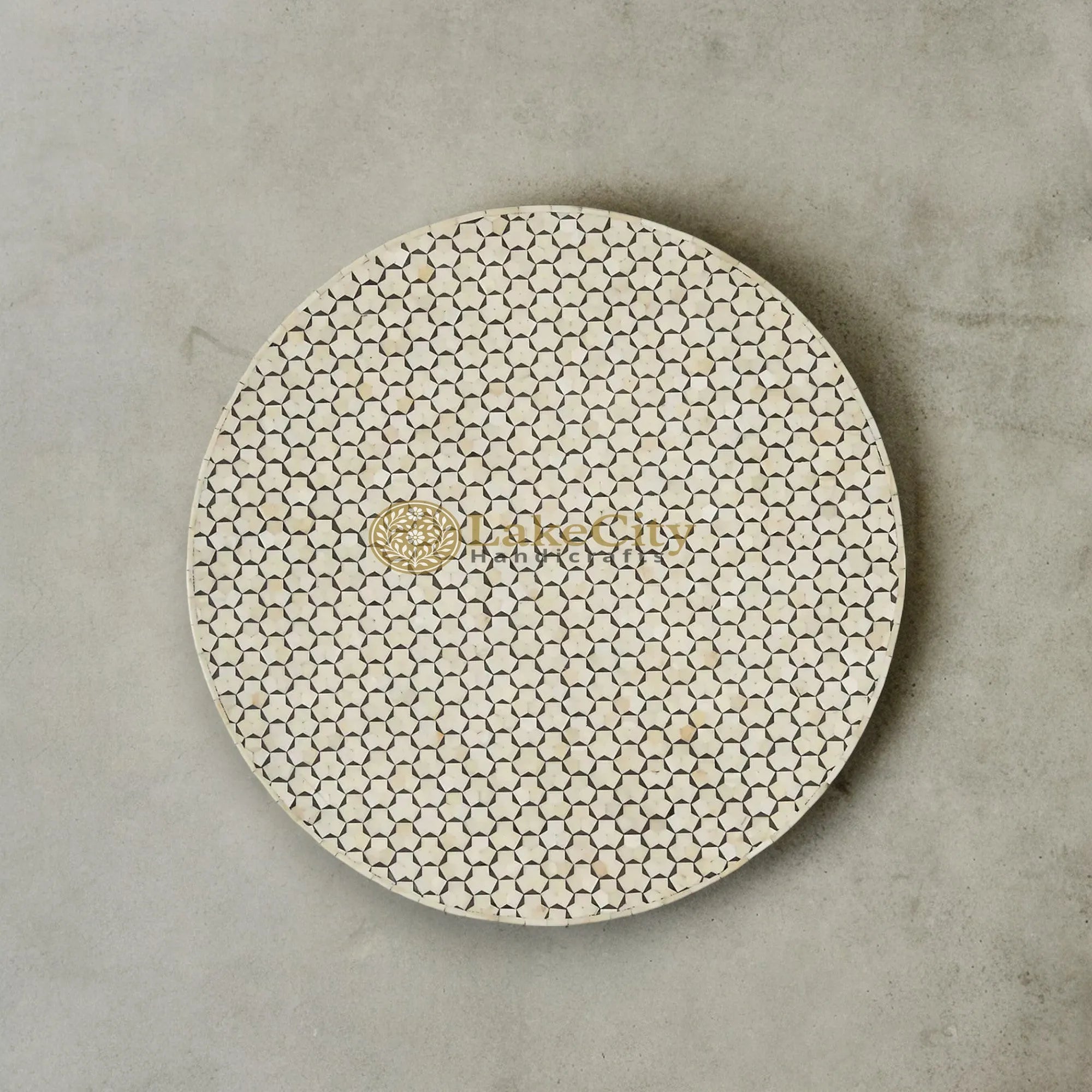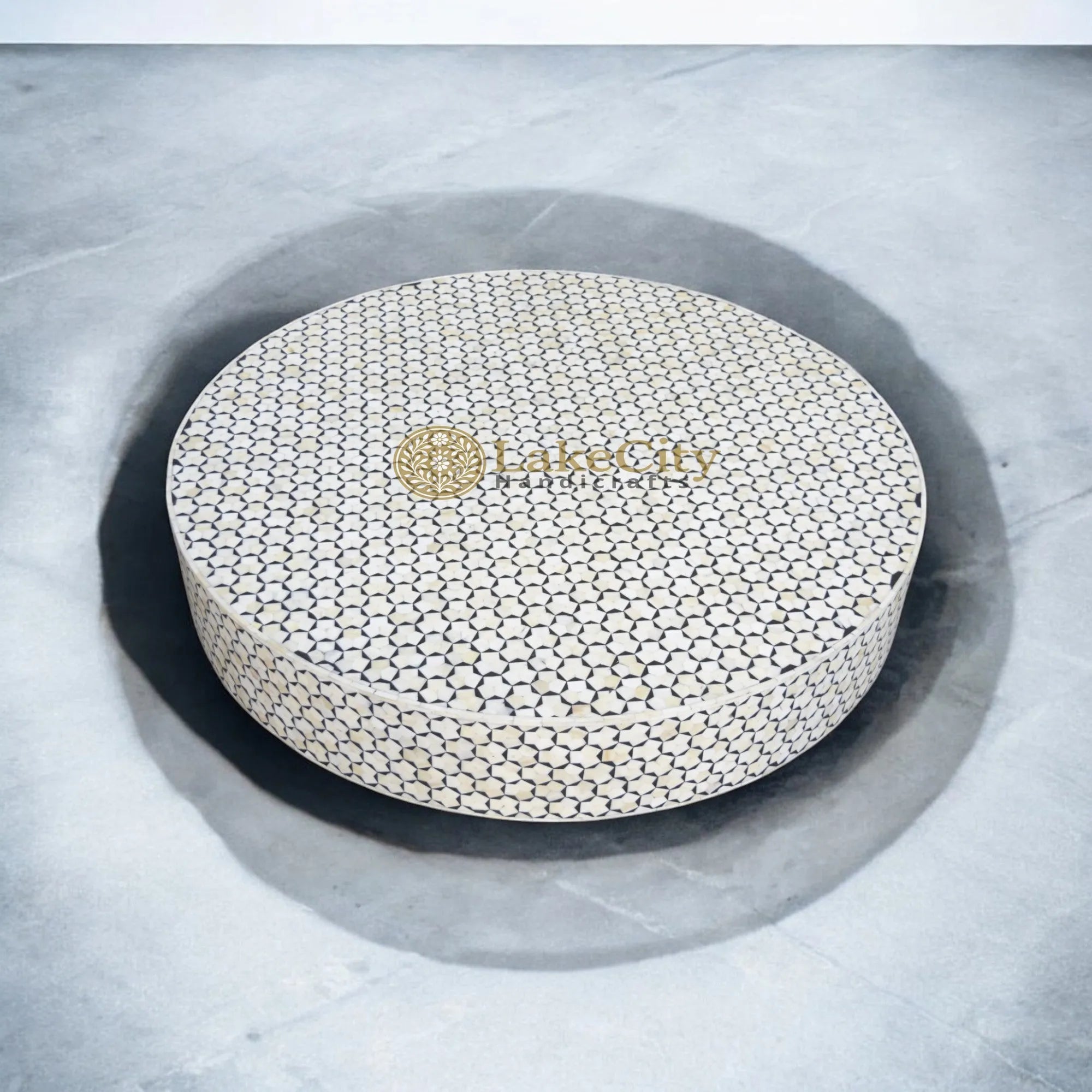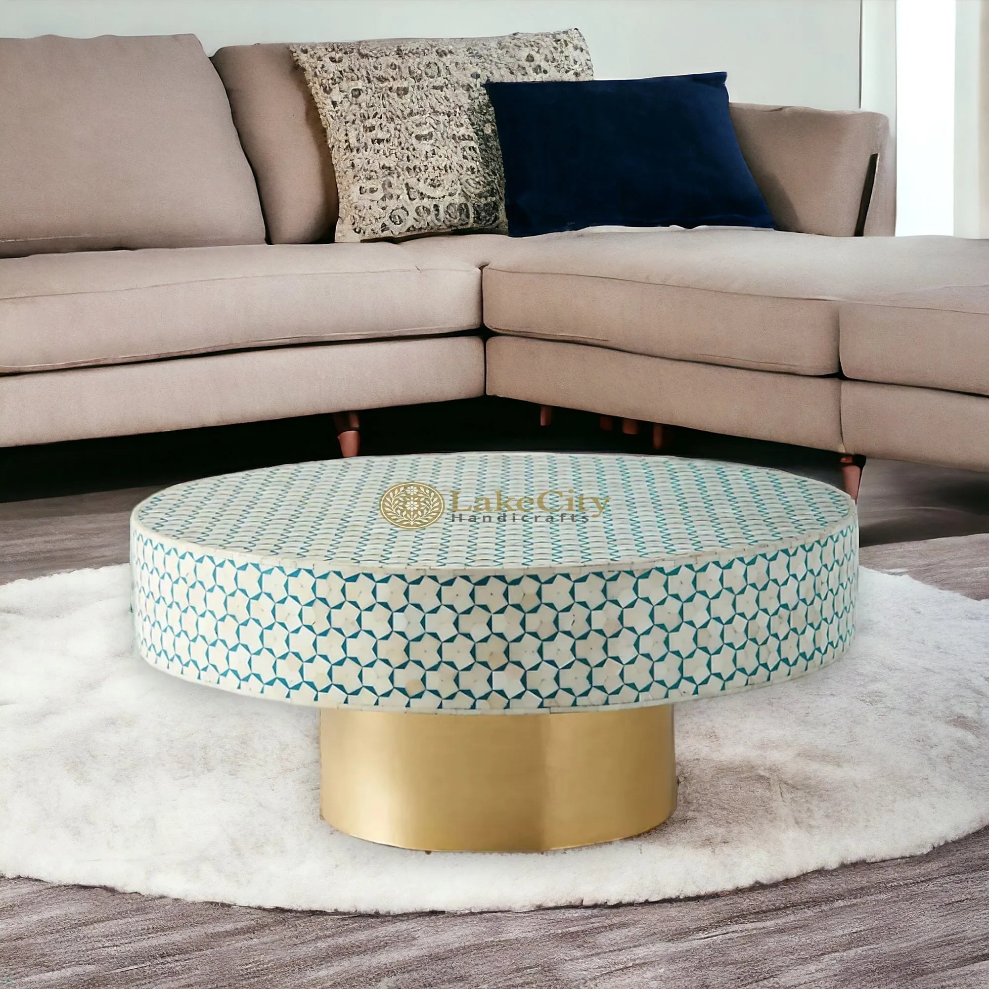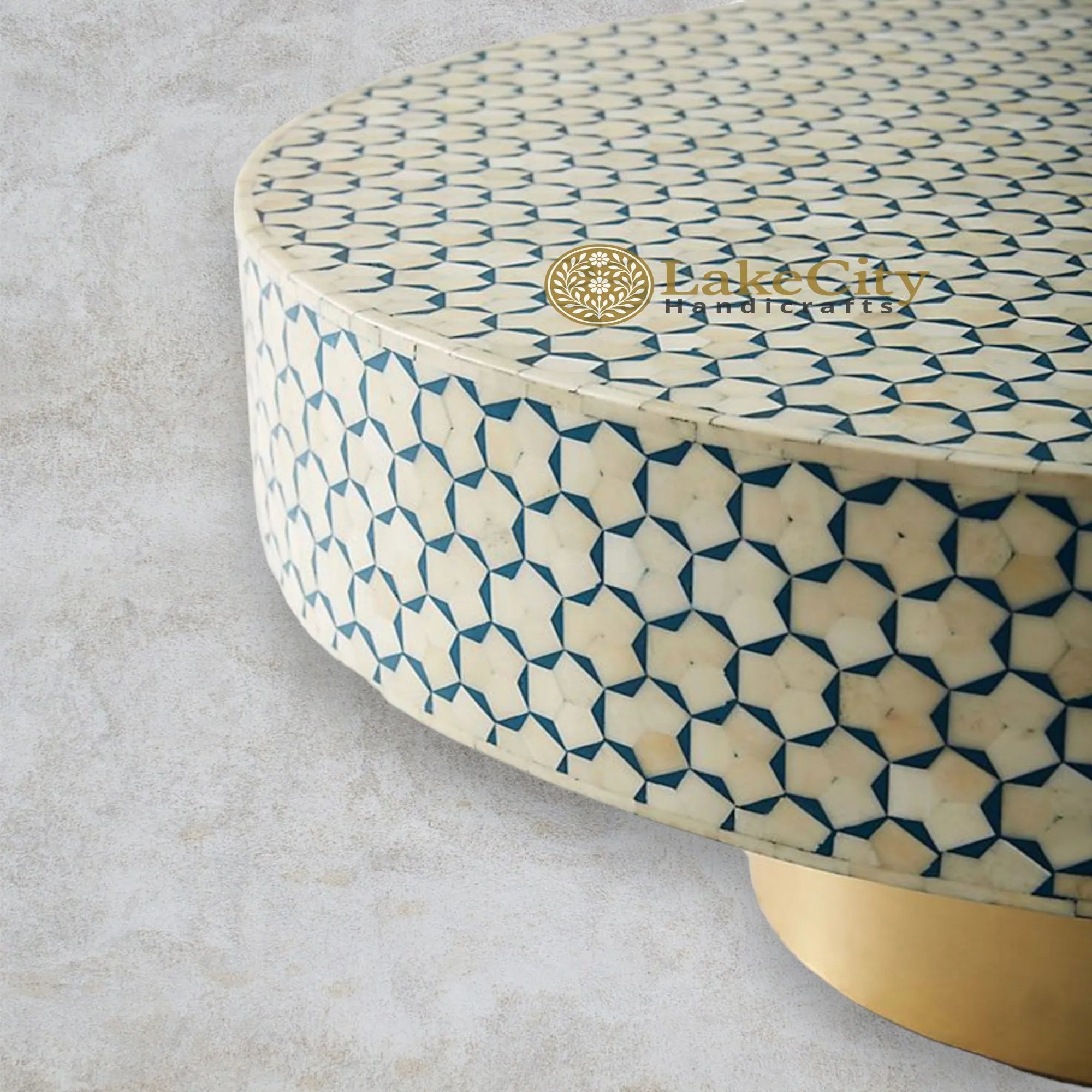 Since the days of ancient Egypt, craftsmen have been using inlaid bone to decorate furniture surfaces, and for good reason: it embodies a natural sheen that adds instant luxury to any space. Handcrafted using the same centuries-old technique at Lakecity Handicrafts, this room-anchoring piece captures the essence of inlay work with a reiterative bone inlay design atop a cylindrical brass base.
