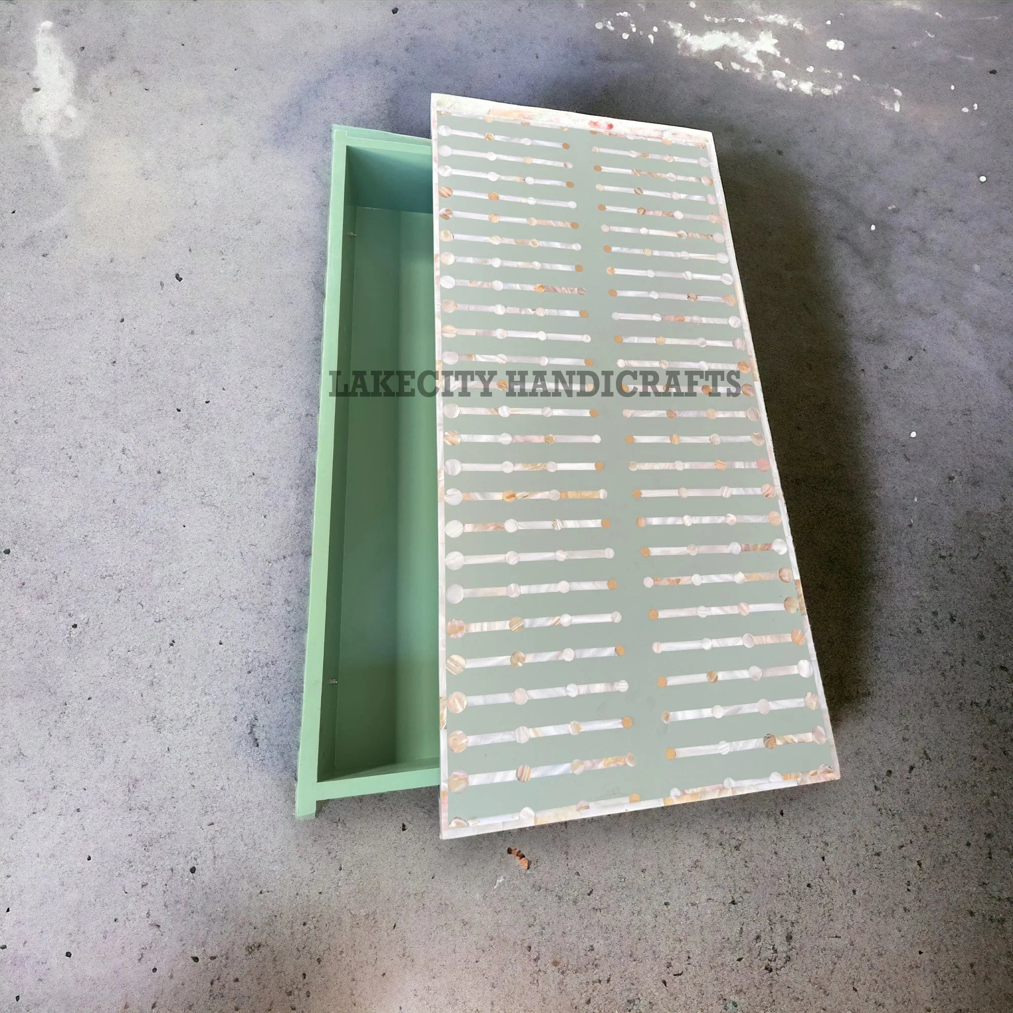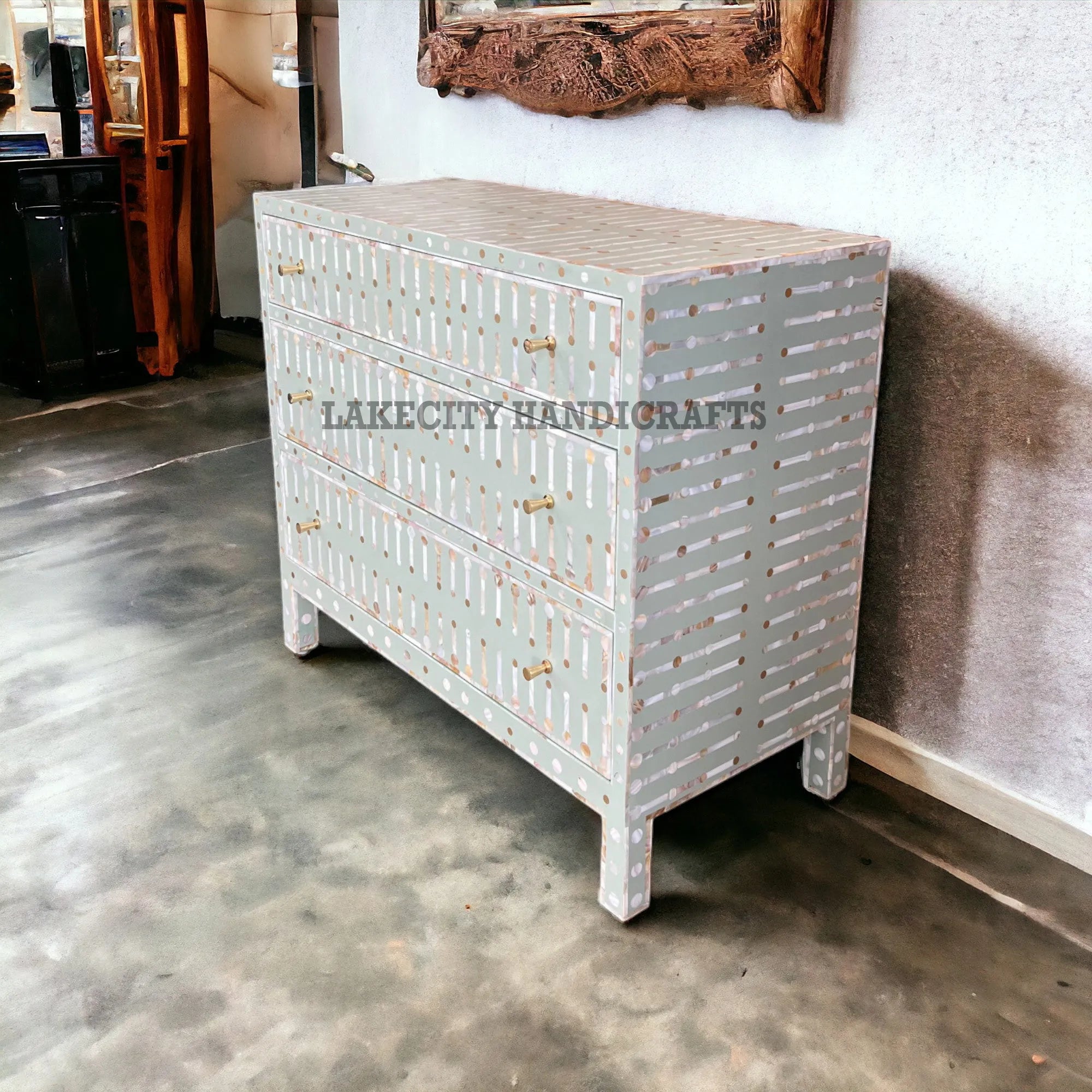 # Handcrafted Green resin and MOP inlay three-drawer dresser with brass hardware