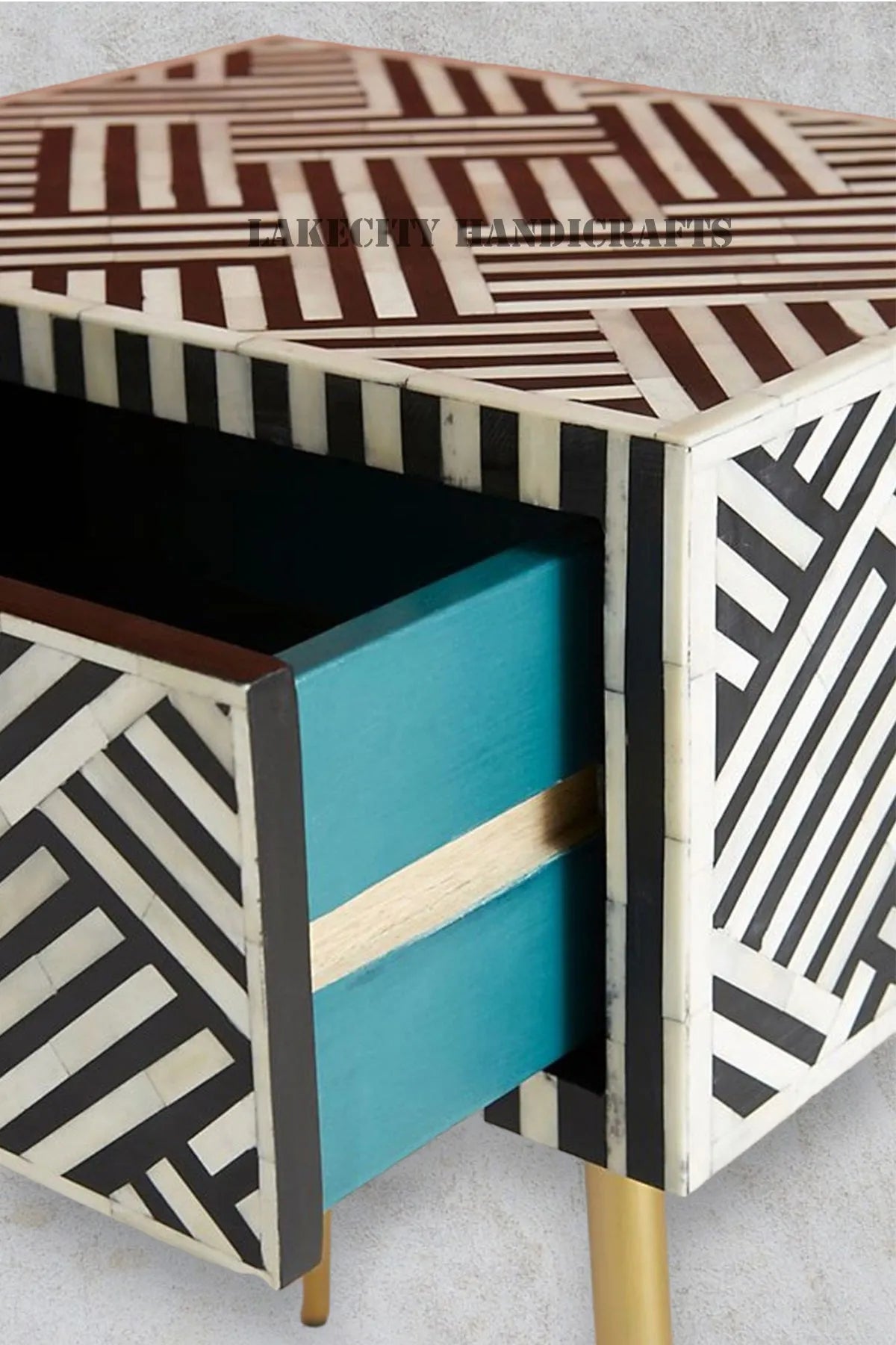 Bone Inlay Optical Design 1 Drawers Bedside Table Black | Bone Inlay Optical Design 1 Drawers Nightstand Table Black