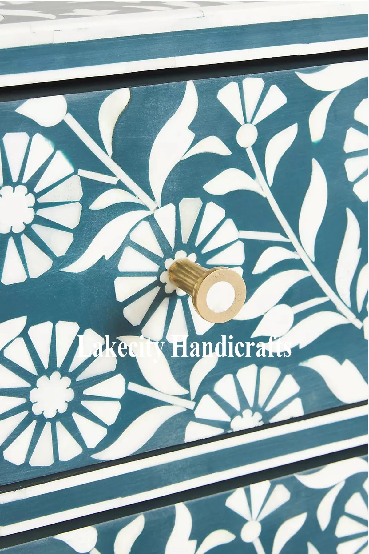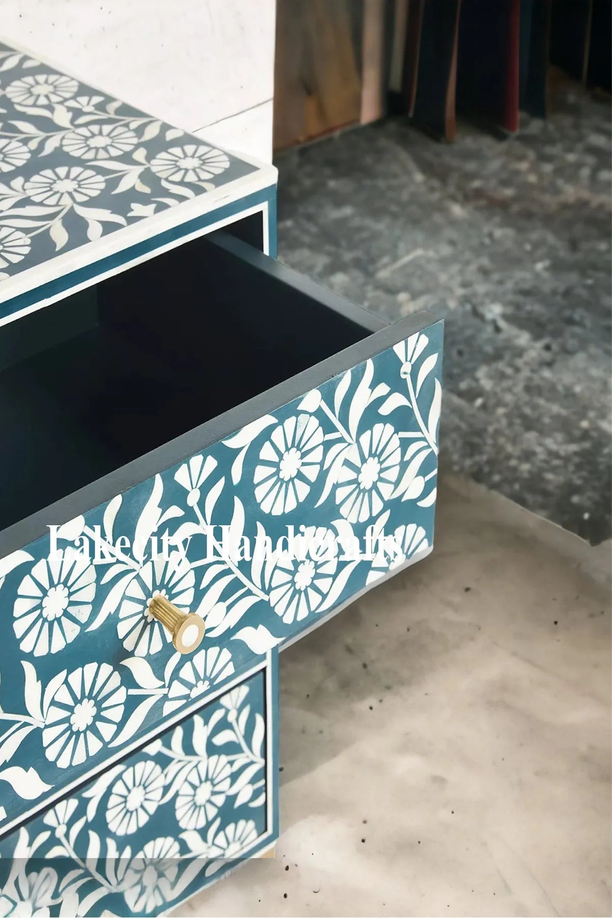 Lalita Bone Inlay Nightstand Teal Green | Green Bedside Table