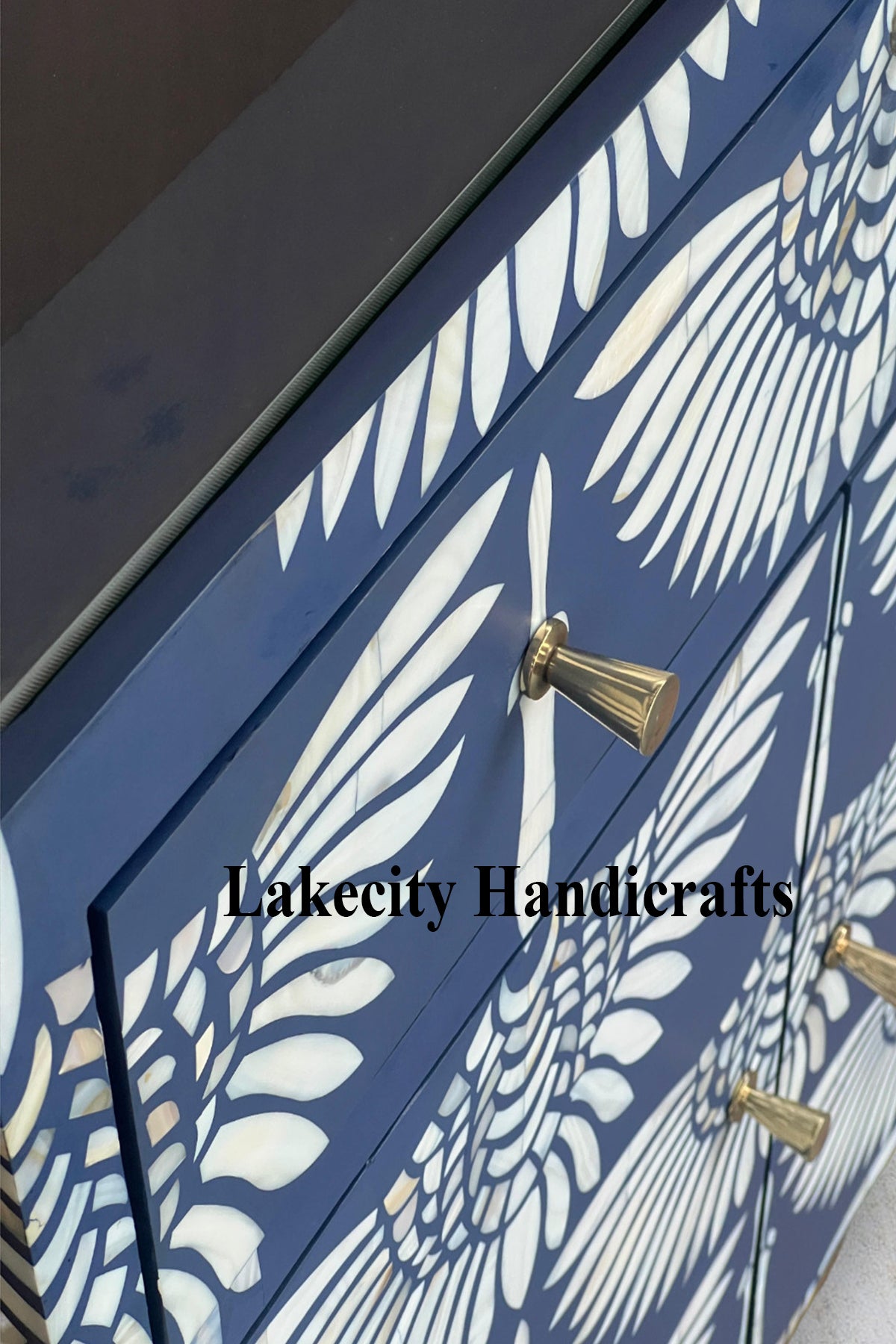# Hand-inlaid mother-of-pearl with navy blue resin