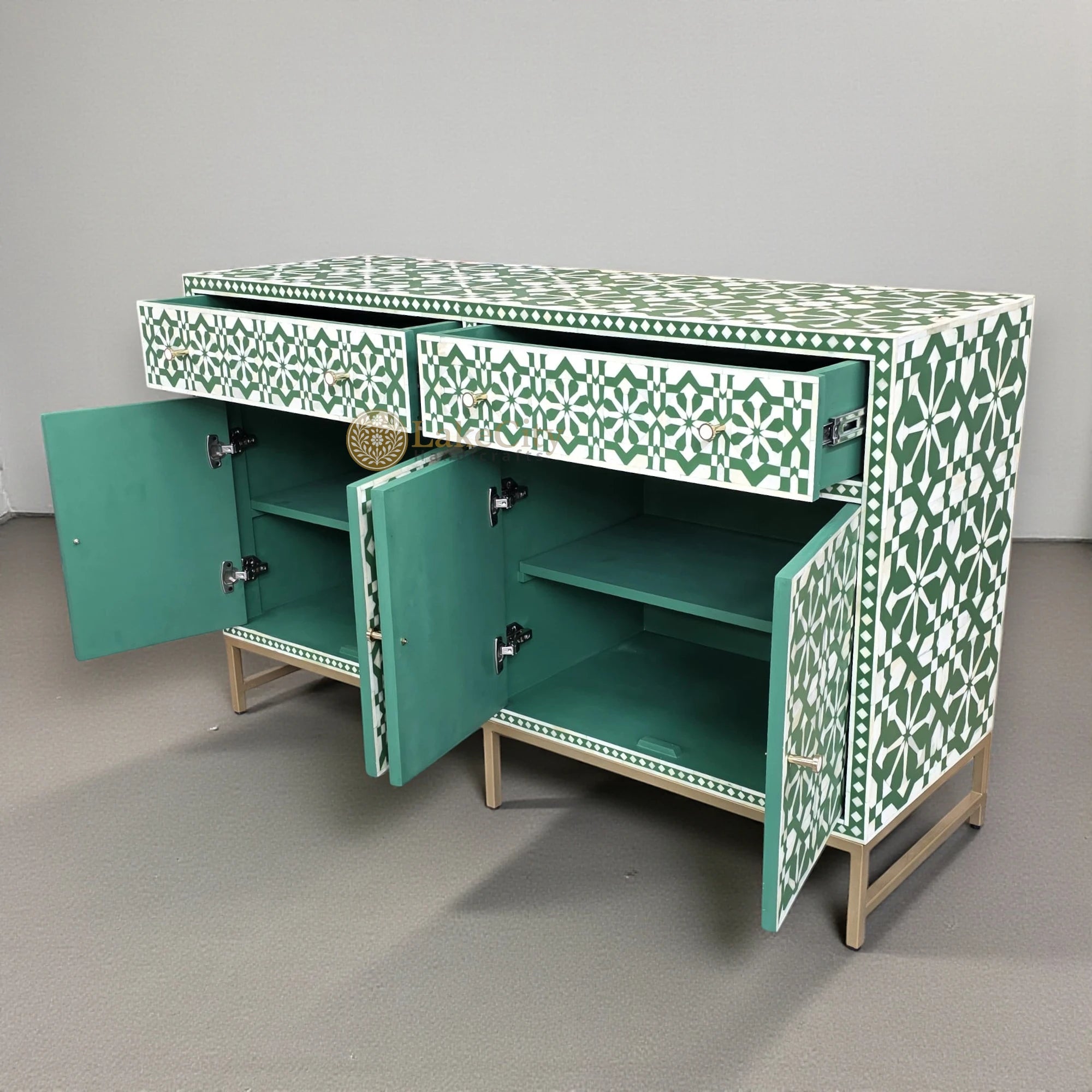 | Handcrafted bone inlay buffet reinforced with tropical hardwood |
