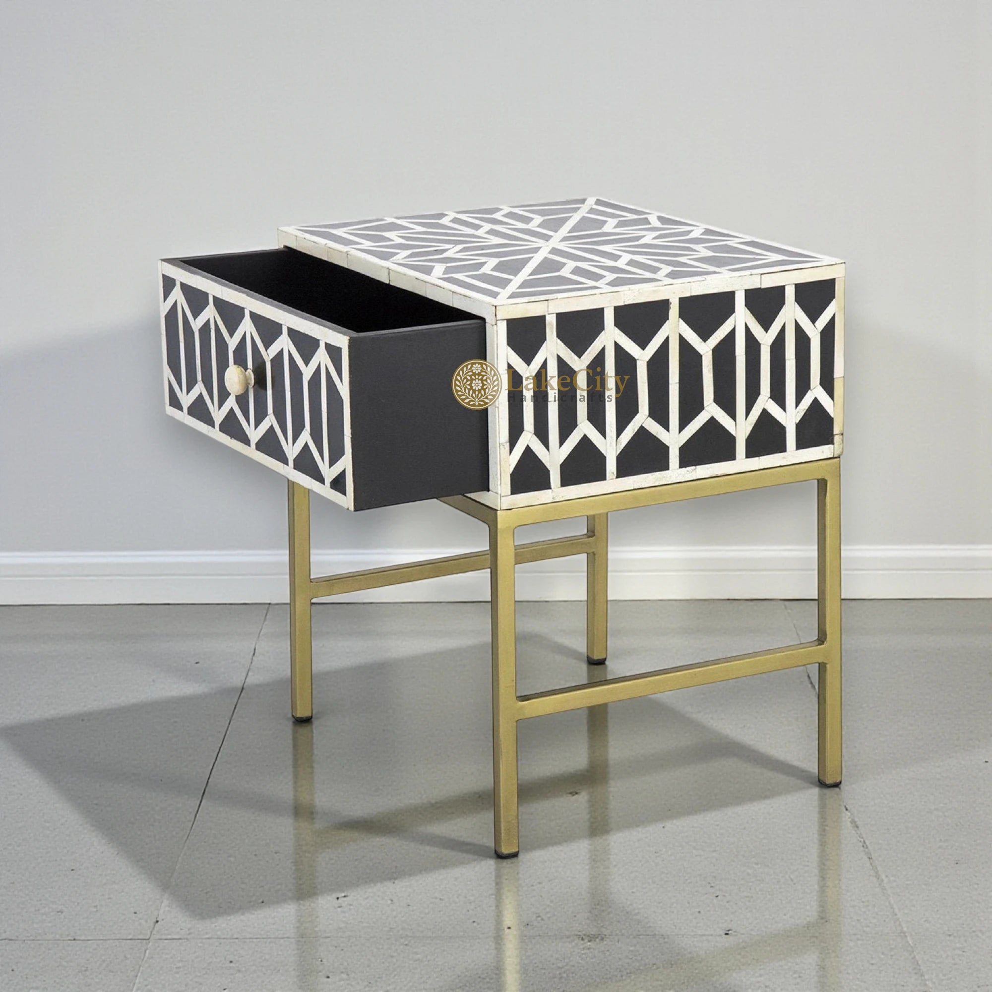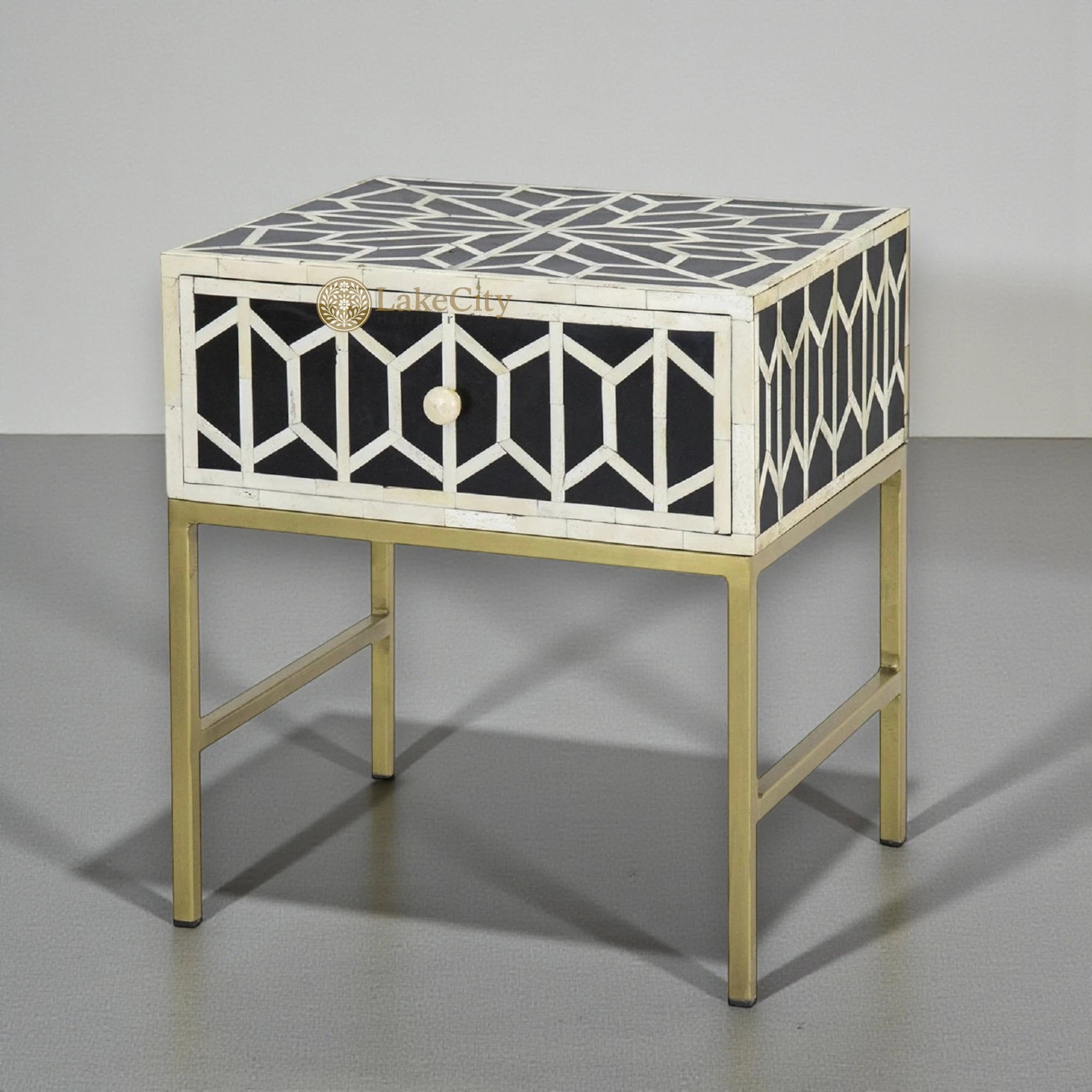 Our bone inlay Bedside will complement existing bedroom furnishings and add that unique character to your peaceful space. It is lovingly crafted with the use of bone inlay and resin to create an exquisite pattern just for you.