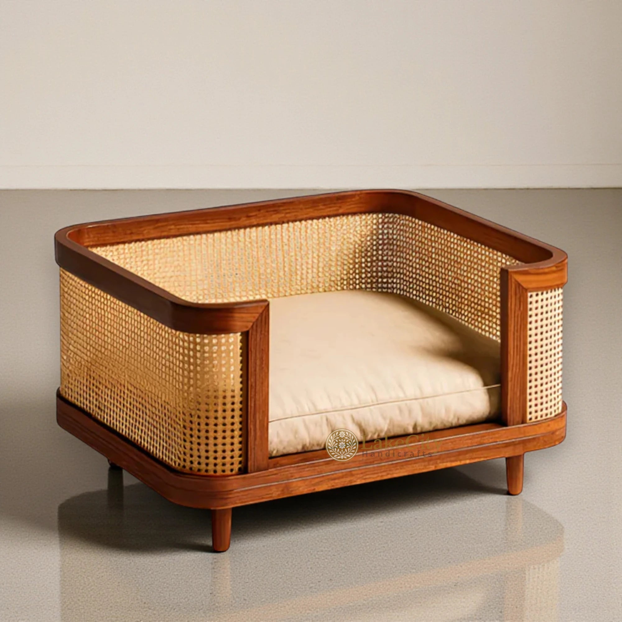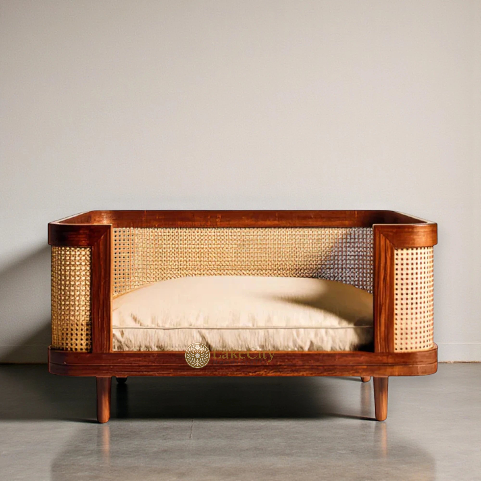 The Bobby Premium Home Pets Sleeping Bed merges sophisticated design with pet comfort through its handcrafted construction. Featuring a solid walnut wood frame paired with intricately woven rattan panels, this bed delivers both durability and visual appeal. The natural wood and cane tones integrate seamlessly into modern, tropical, and bohemian interiors, while the plush cotton cushion provides your pet with a supportive resting surface. This artisanal piece elevates pet furniture from functional necessity to a design statement that enhances your living space.