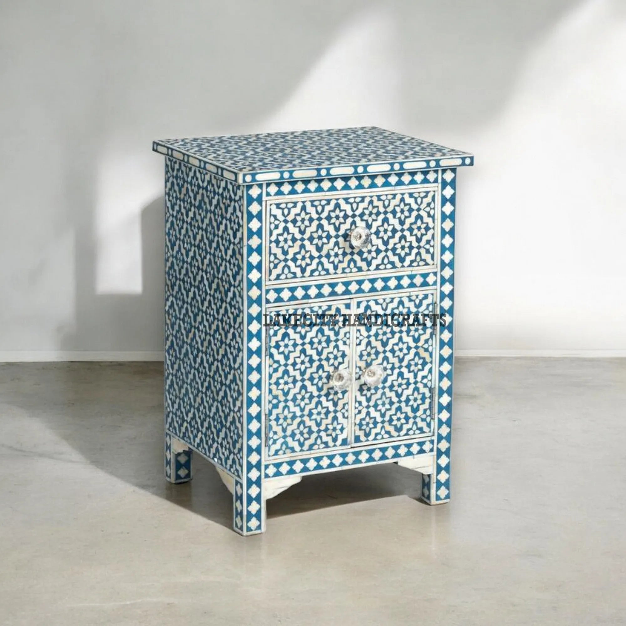 Bone Inlay Arctic 1 Drawer & 2 Doors Nightstand Table Blue | Bone Inlay Arctic 1 Drawer & 2 Doors Bedside Table Blue