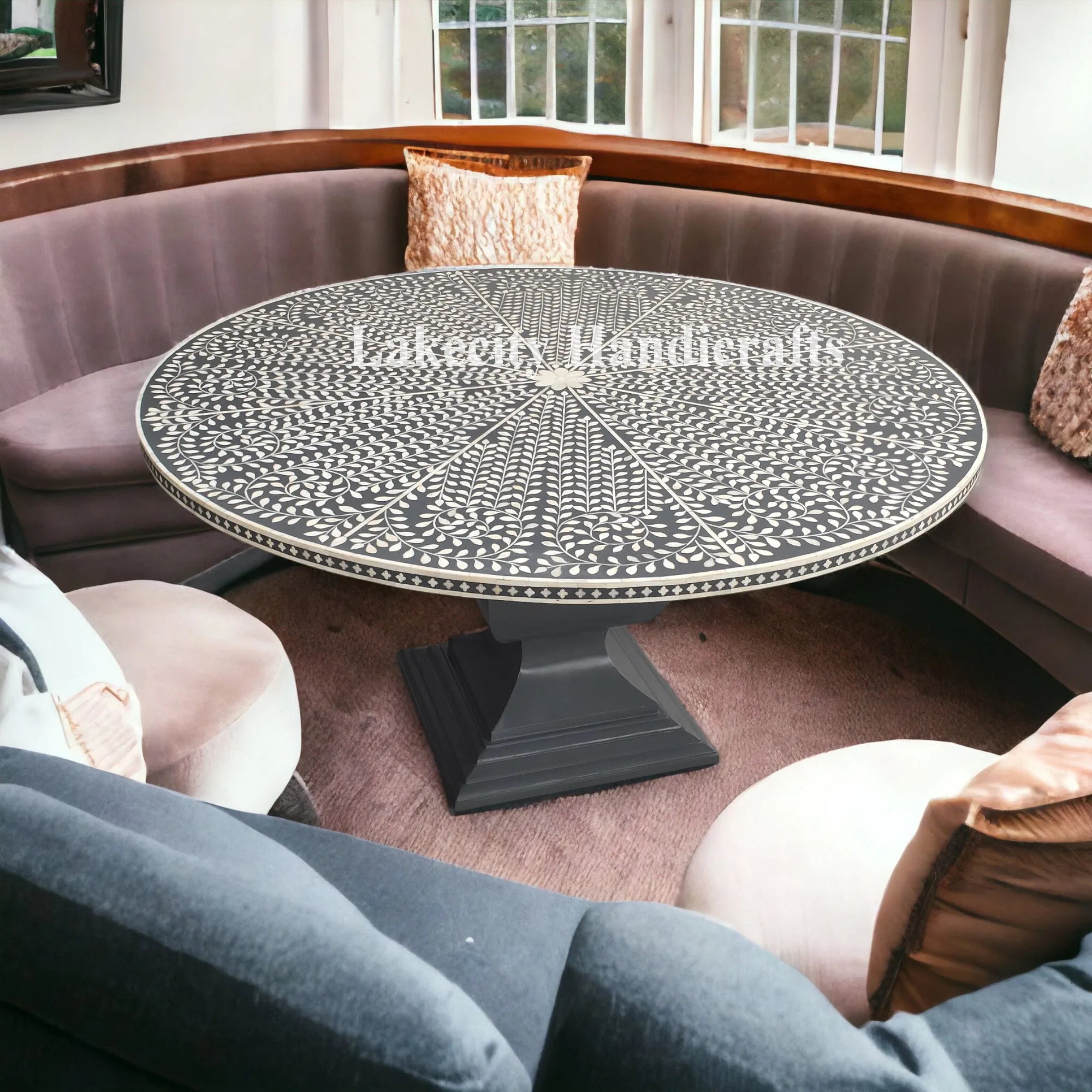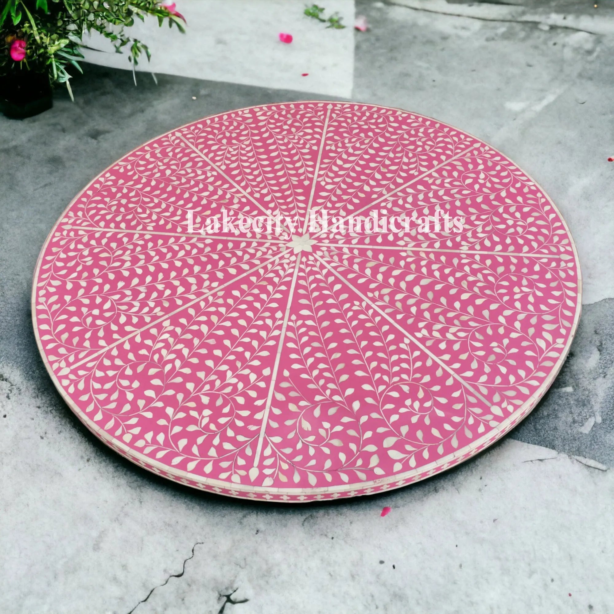 | Table Center features very minute detailing of Bone Inlay in Flower pattern |