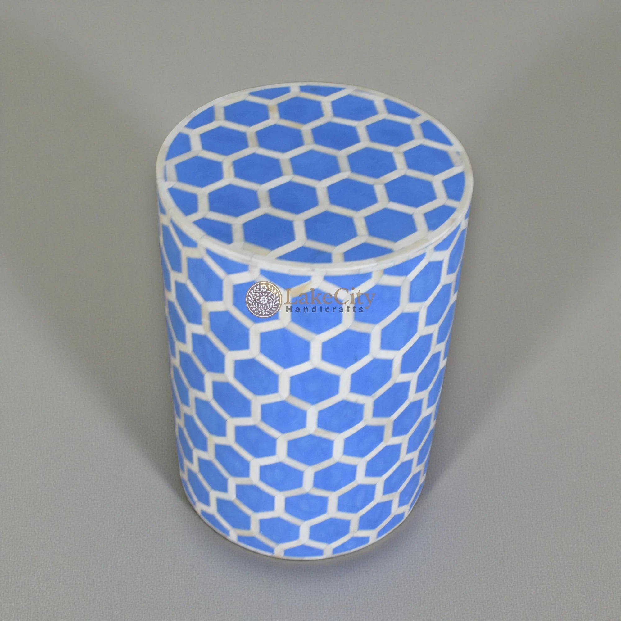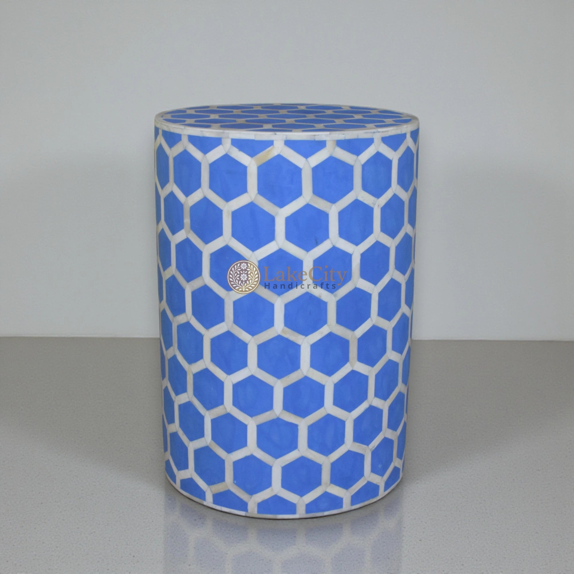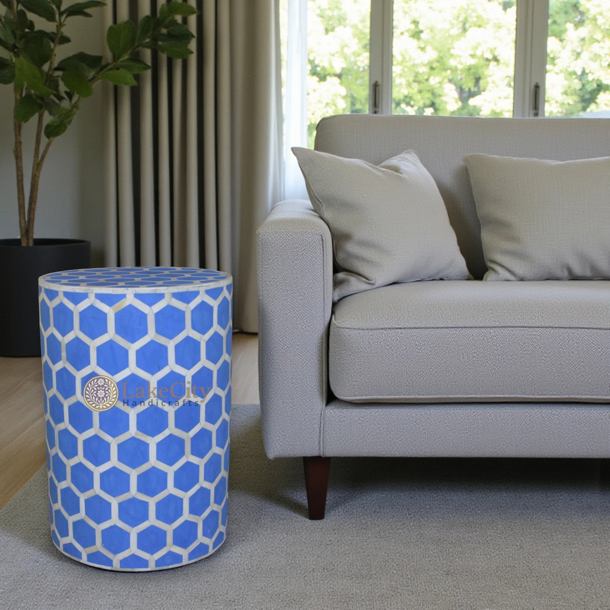 Our Bone Inlaid Round Side Table is inlaid by hand to create an intricate honeycomb pattern. On top of that, we added Blue color to smooth things out, making it an ideal spot to rest a drink, a book, or both.