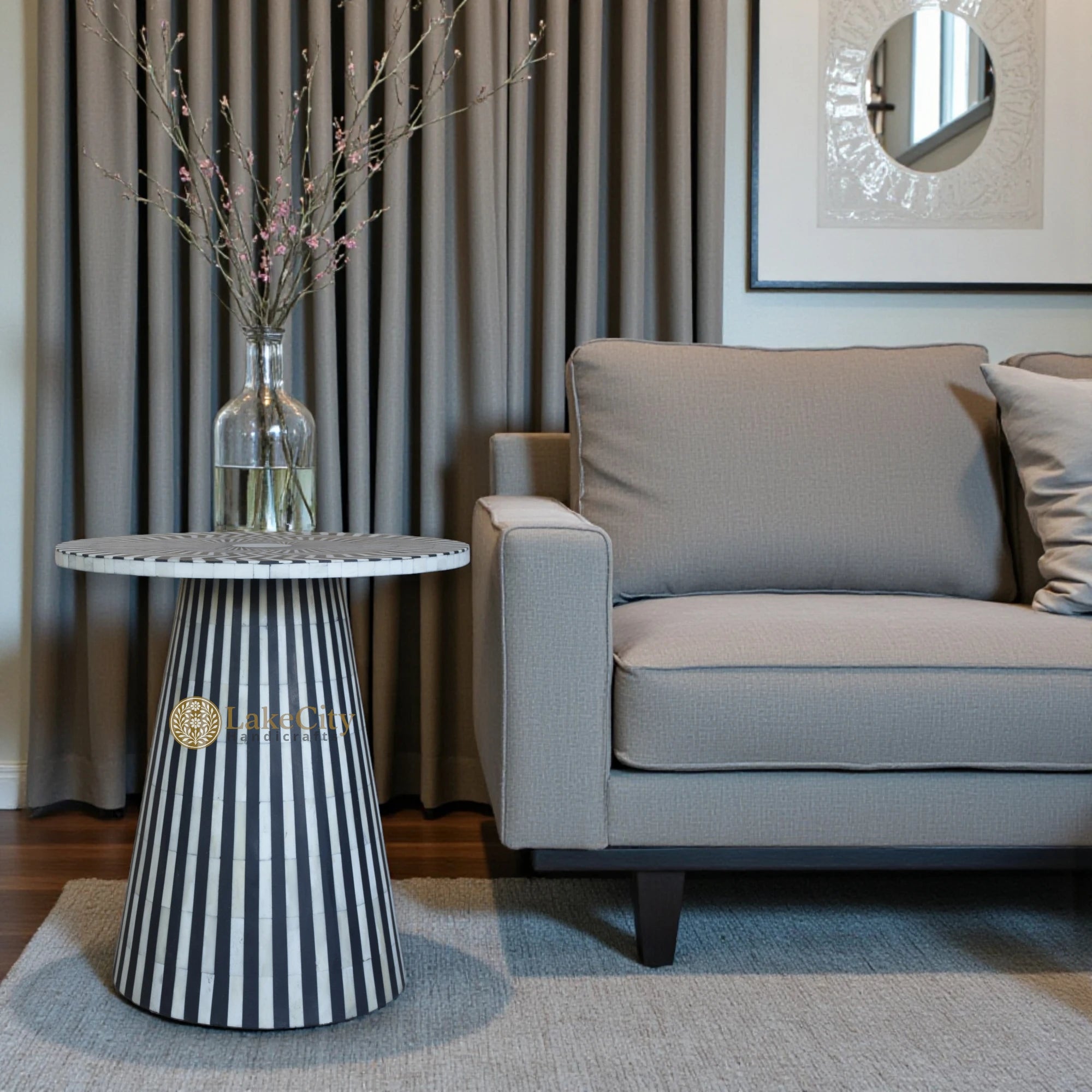 The simplicity of our Bone Inlay Round Side Table makes it a go-anywhere accent piece. Its slim design allows you to pull it close to a sofa or chair, offering a handy landing spot for drinks or a book. Pair it with a Bone Inlay Coffee Table for the ultimate living room wow factor.