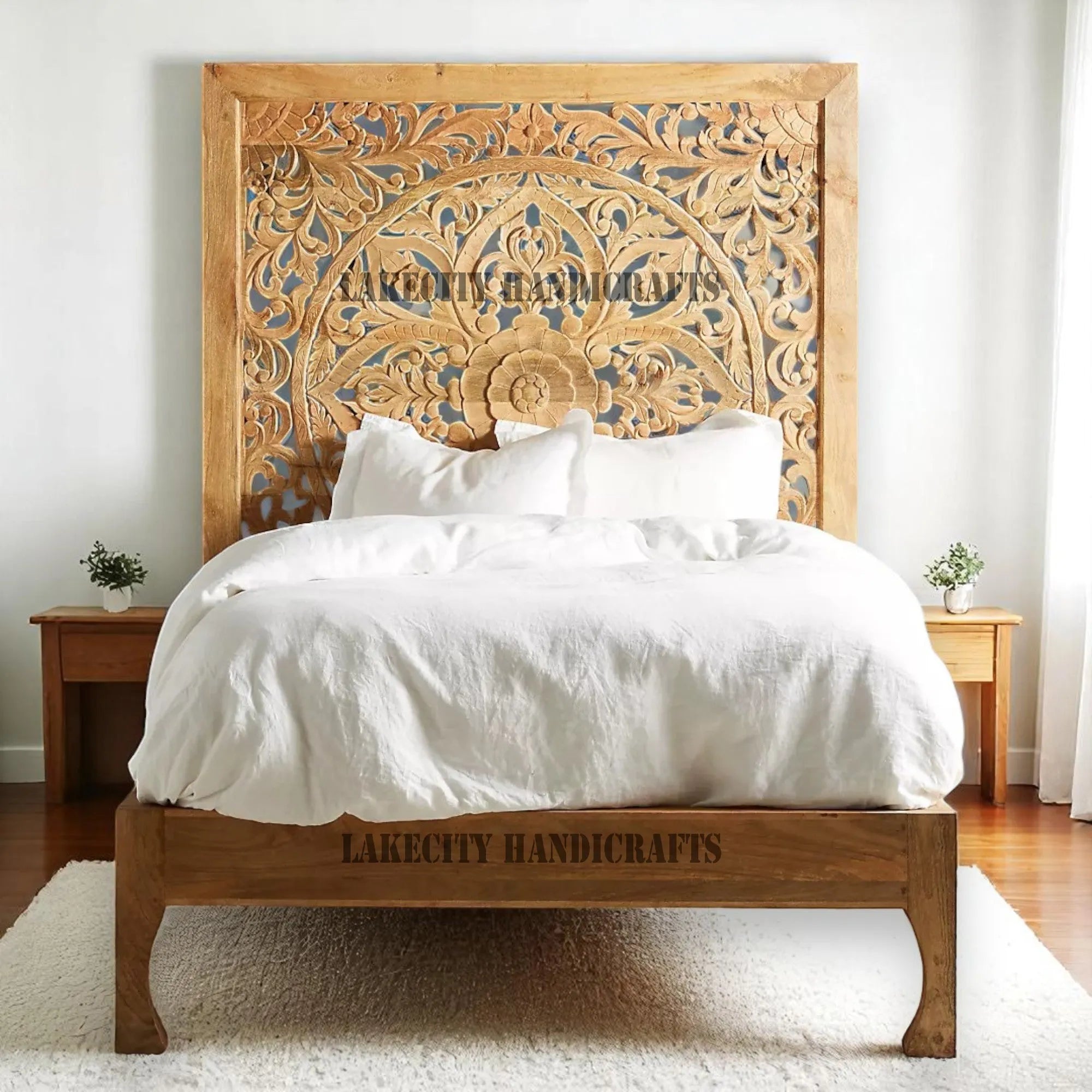 Artistic Headboard: Beautifully hand-carved floral and leaf patterns that serve as a striking centerpiece for the bedroom.