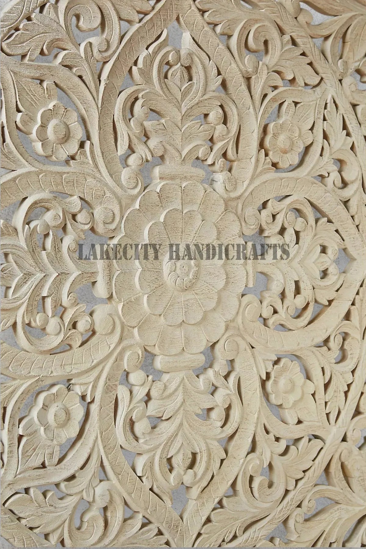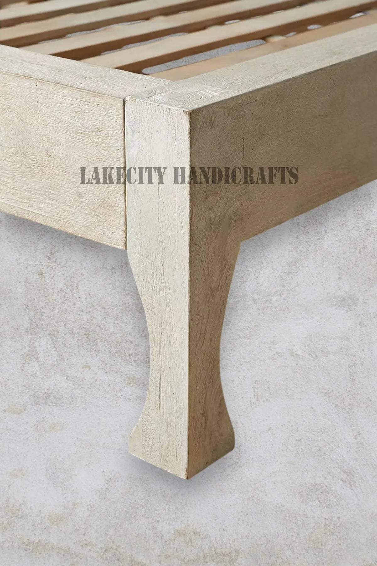 Hand-carved Lombok Bed Natural White | Wood Carved Bed Natural Frame