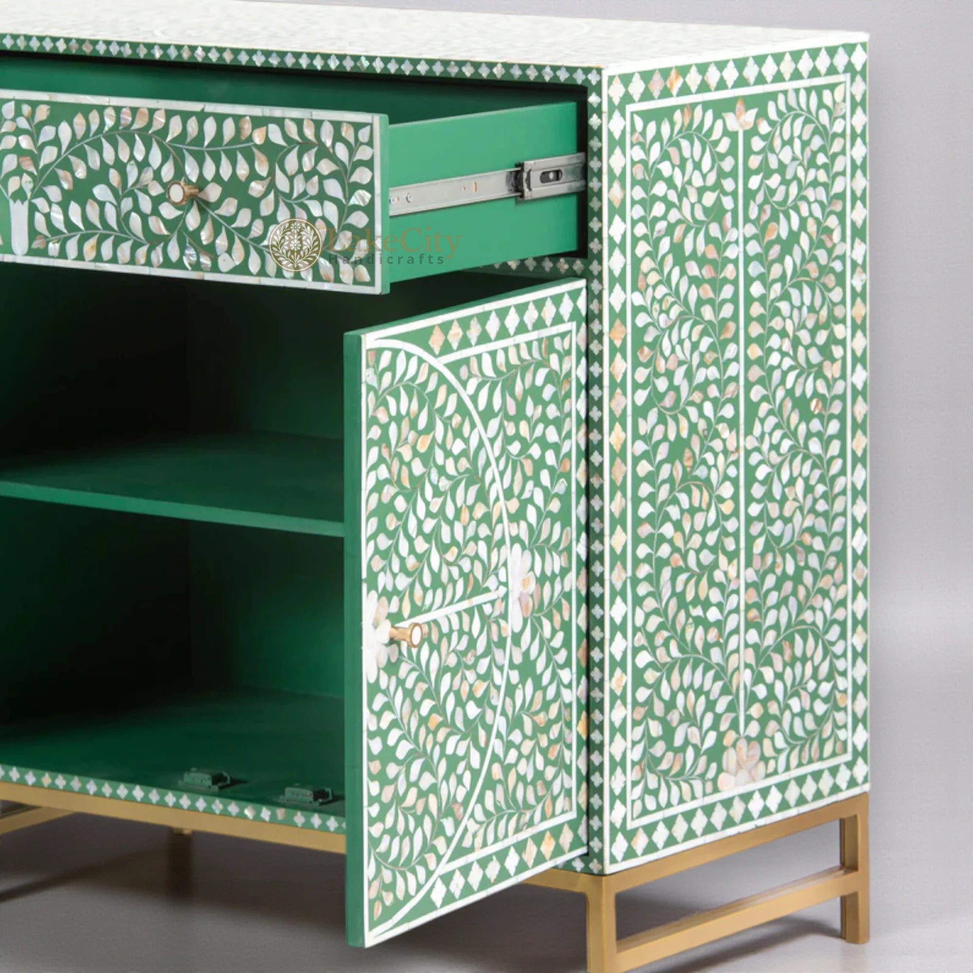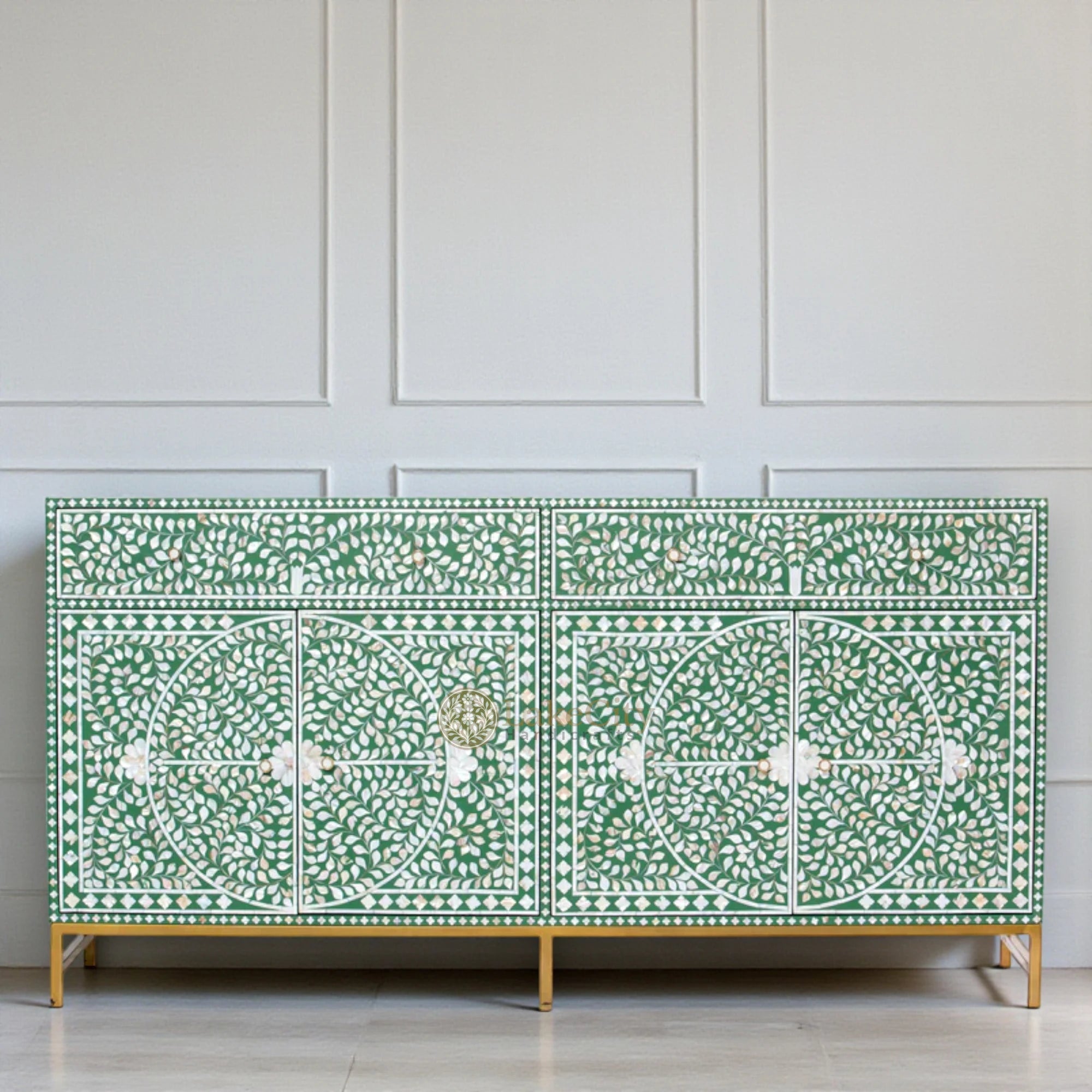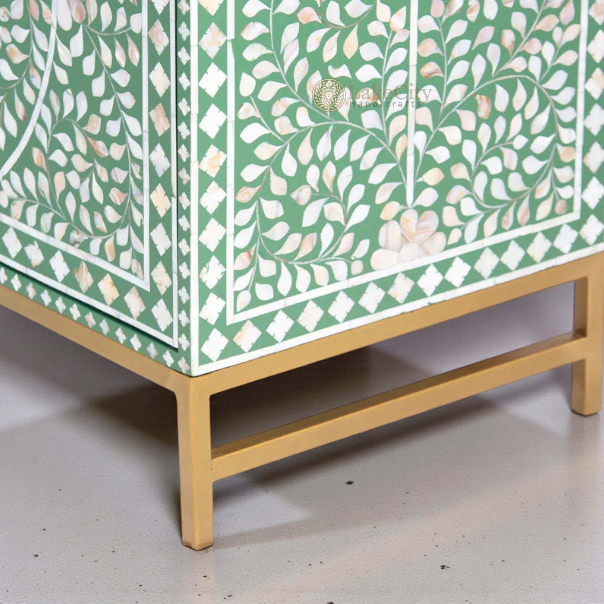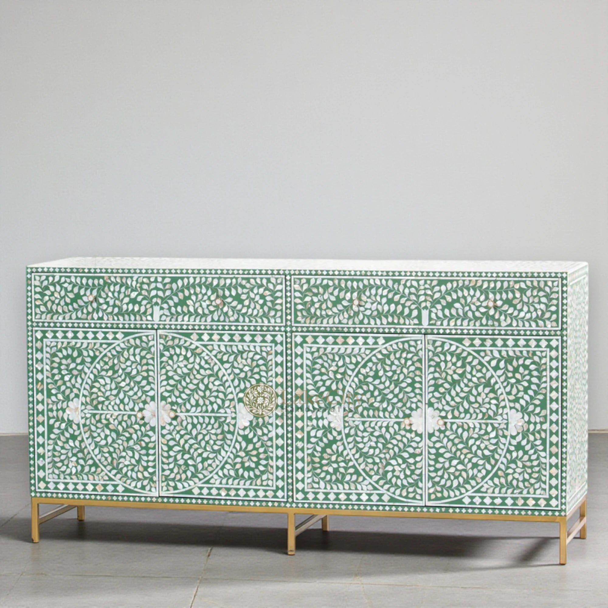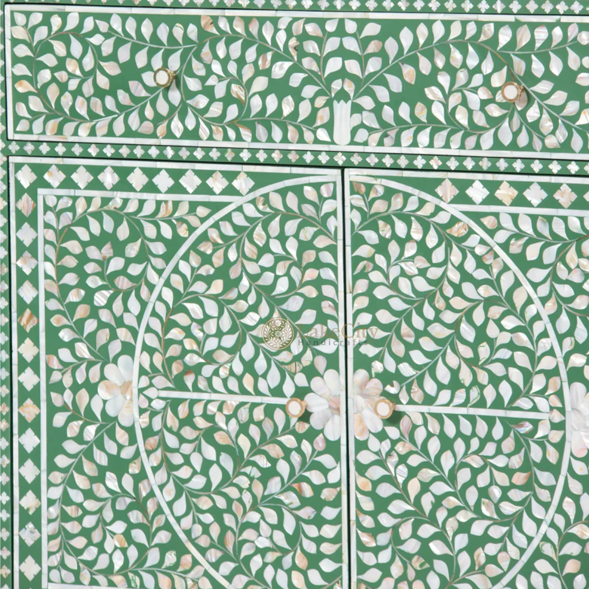 Handcrafted with perfection, this mop inlay buffet in floral design is perfect luxury. Fit it in living room or bedroom and make the space look luxurious.