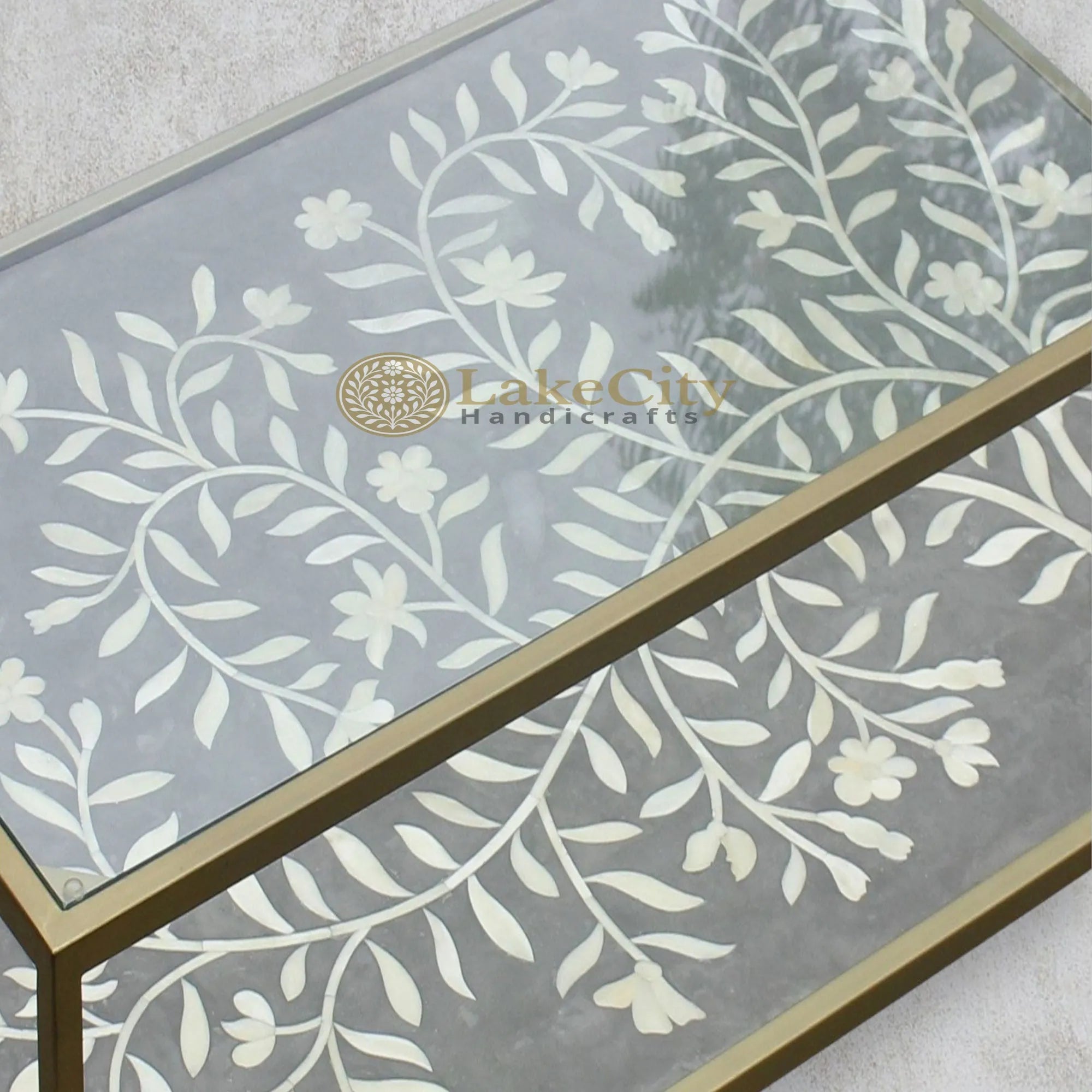 The perfect addition to vintage home decor, this exquisite occasional piece features a stunning inlay of natural bone and resin components - bringing statement-making beauty to your living spaces.