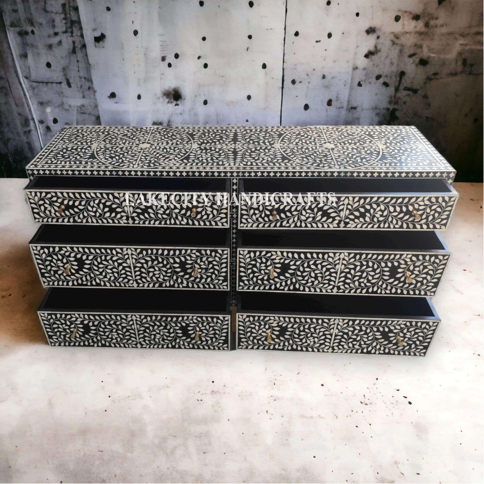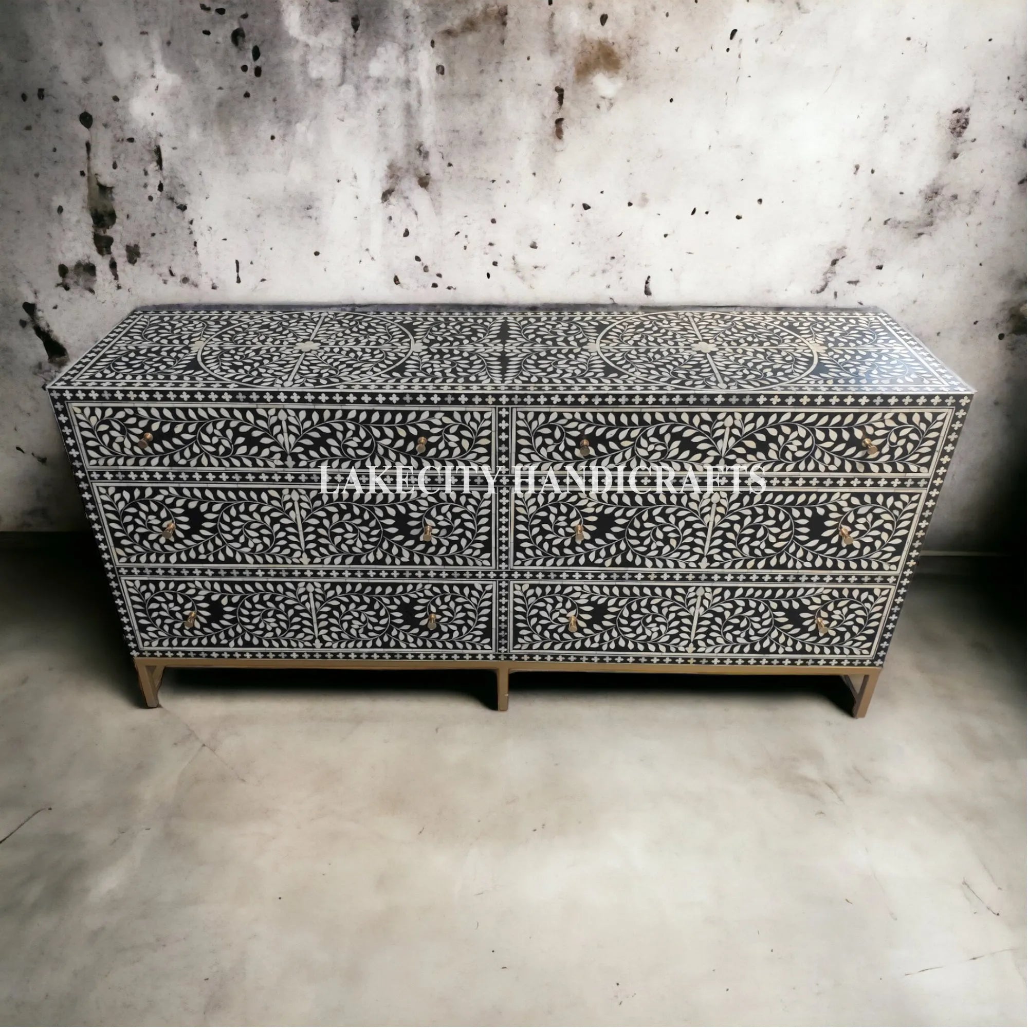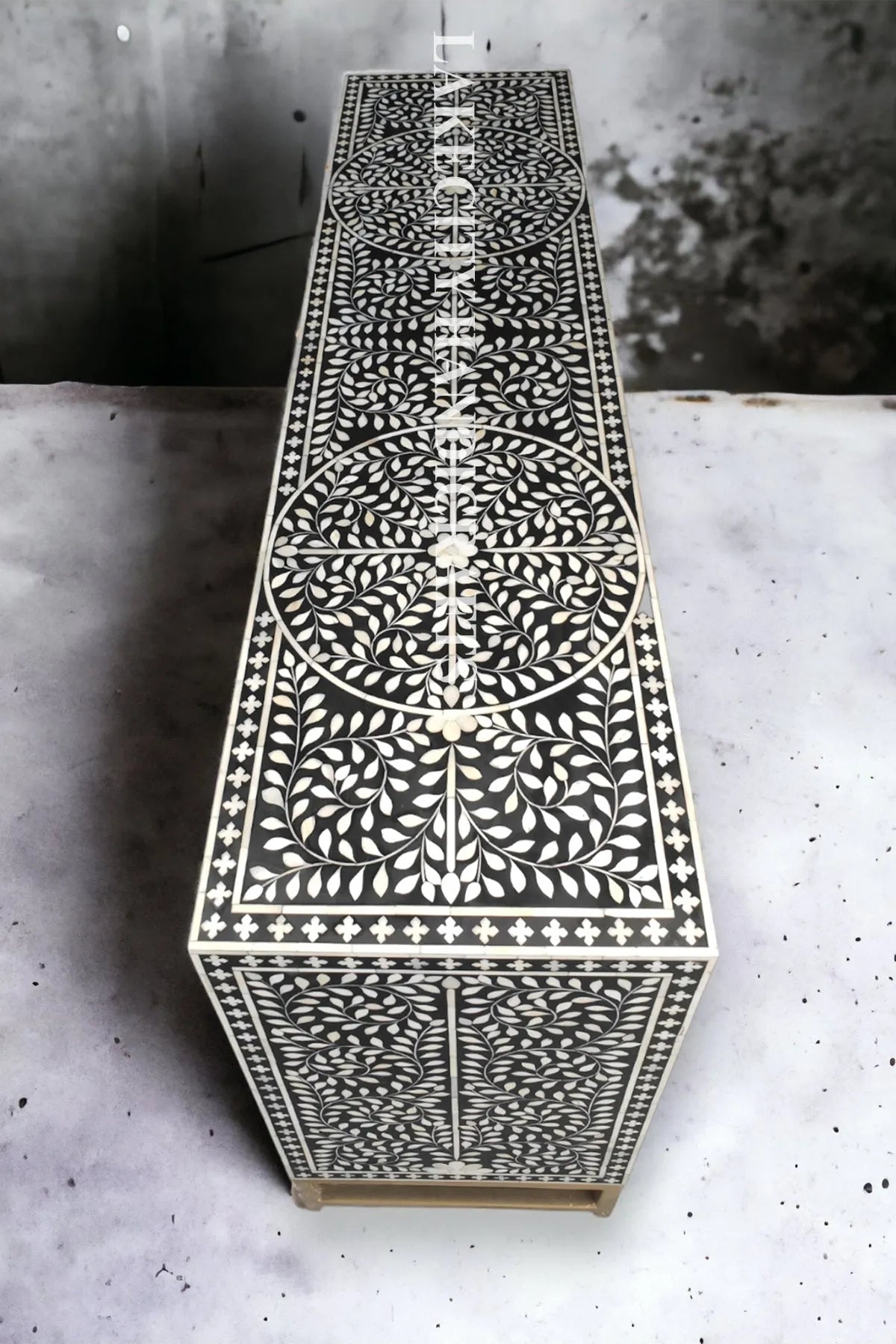 | Handcrafted bone inlay buffet reinforced with tropical hardwood |