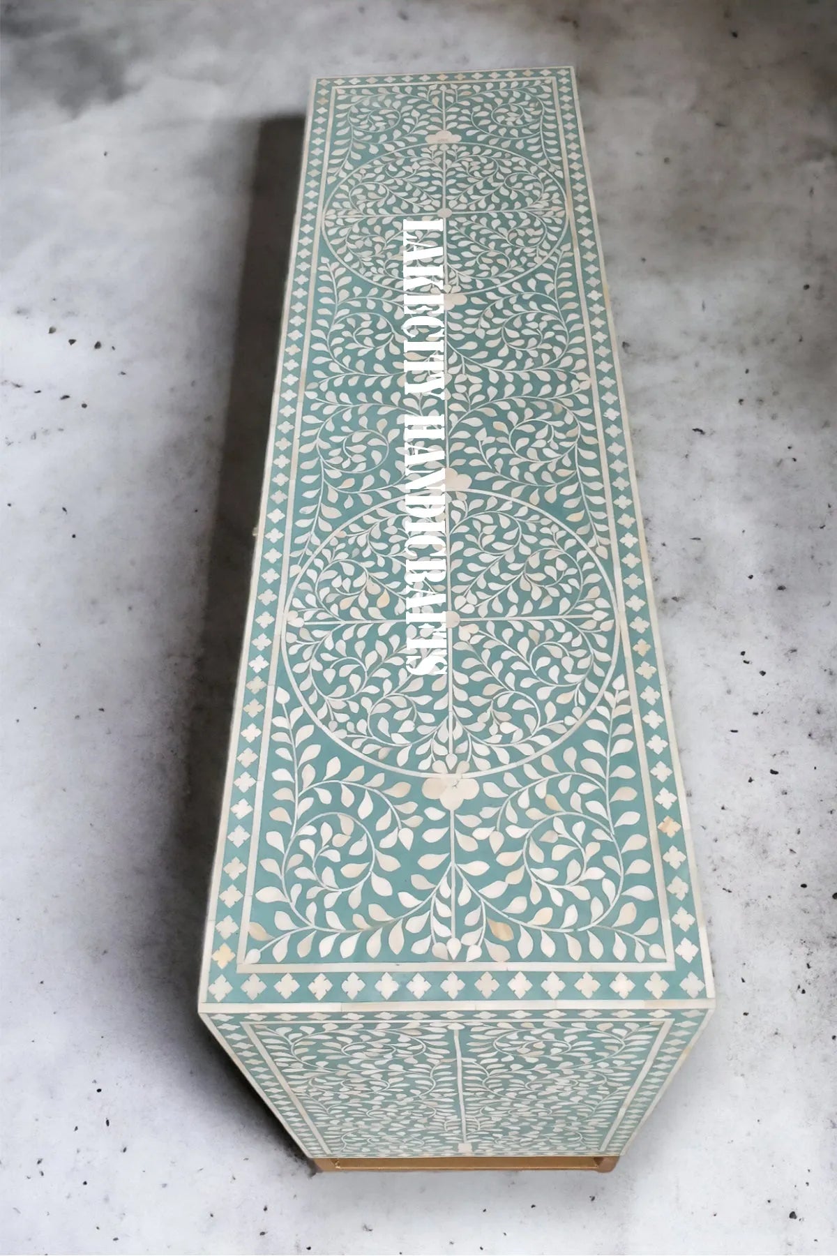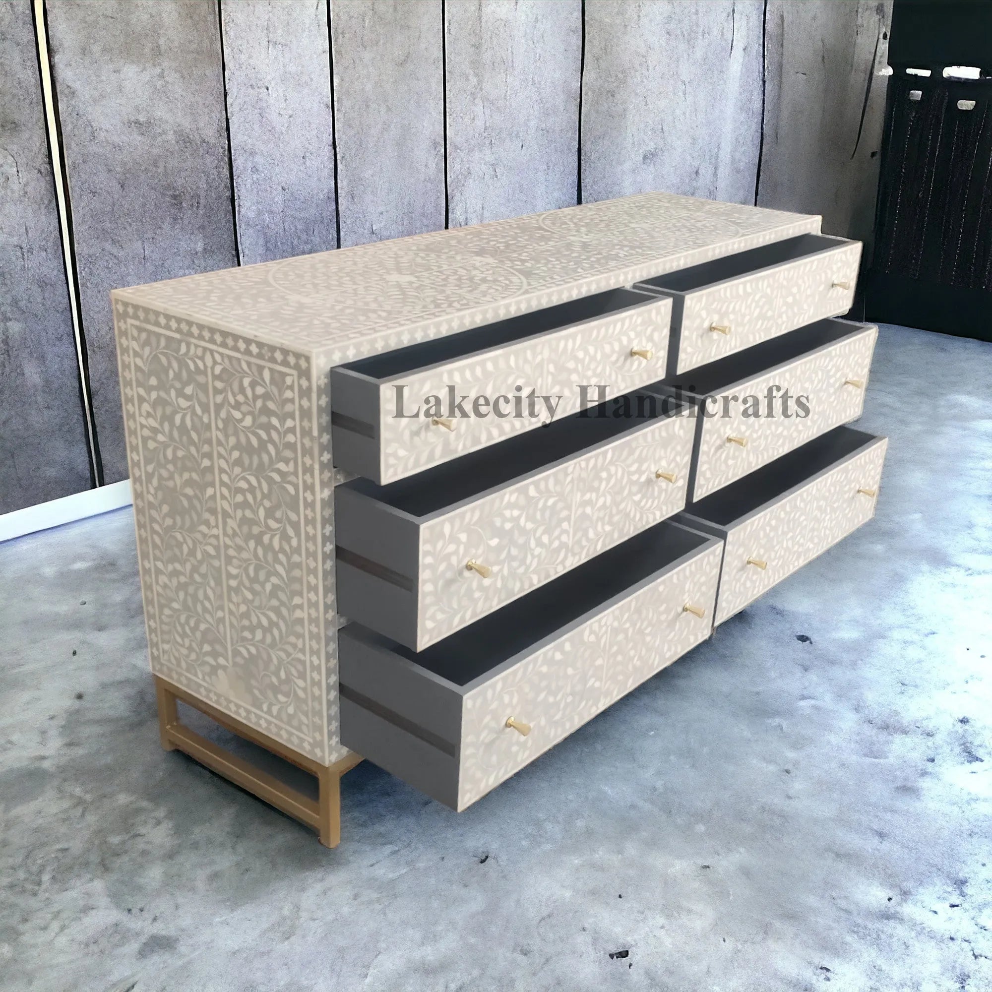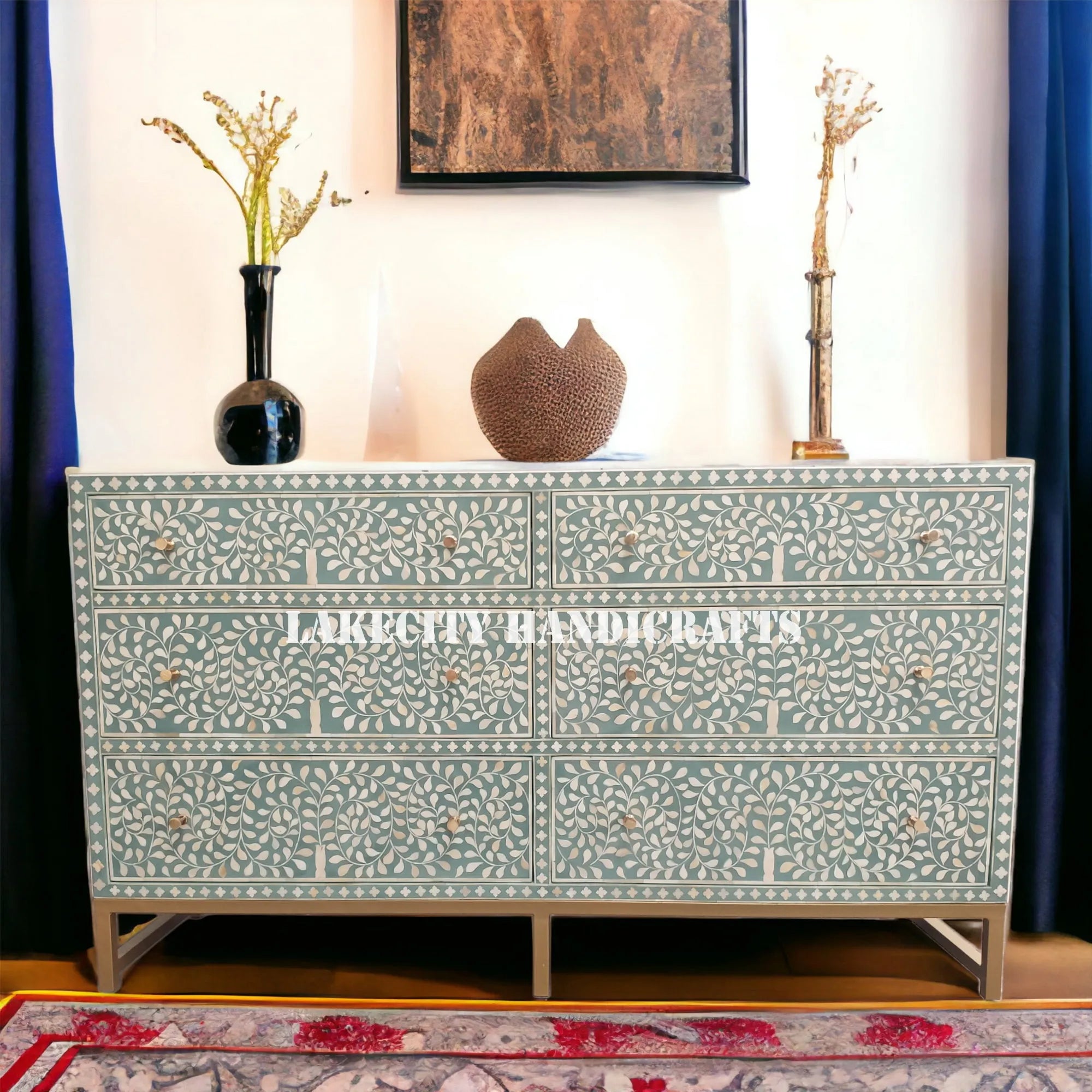 | Handcrafted bone inlay buffet reinforced with tropical hardwood |