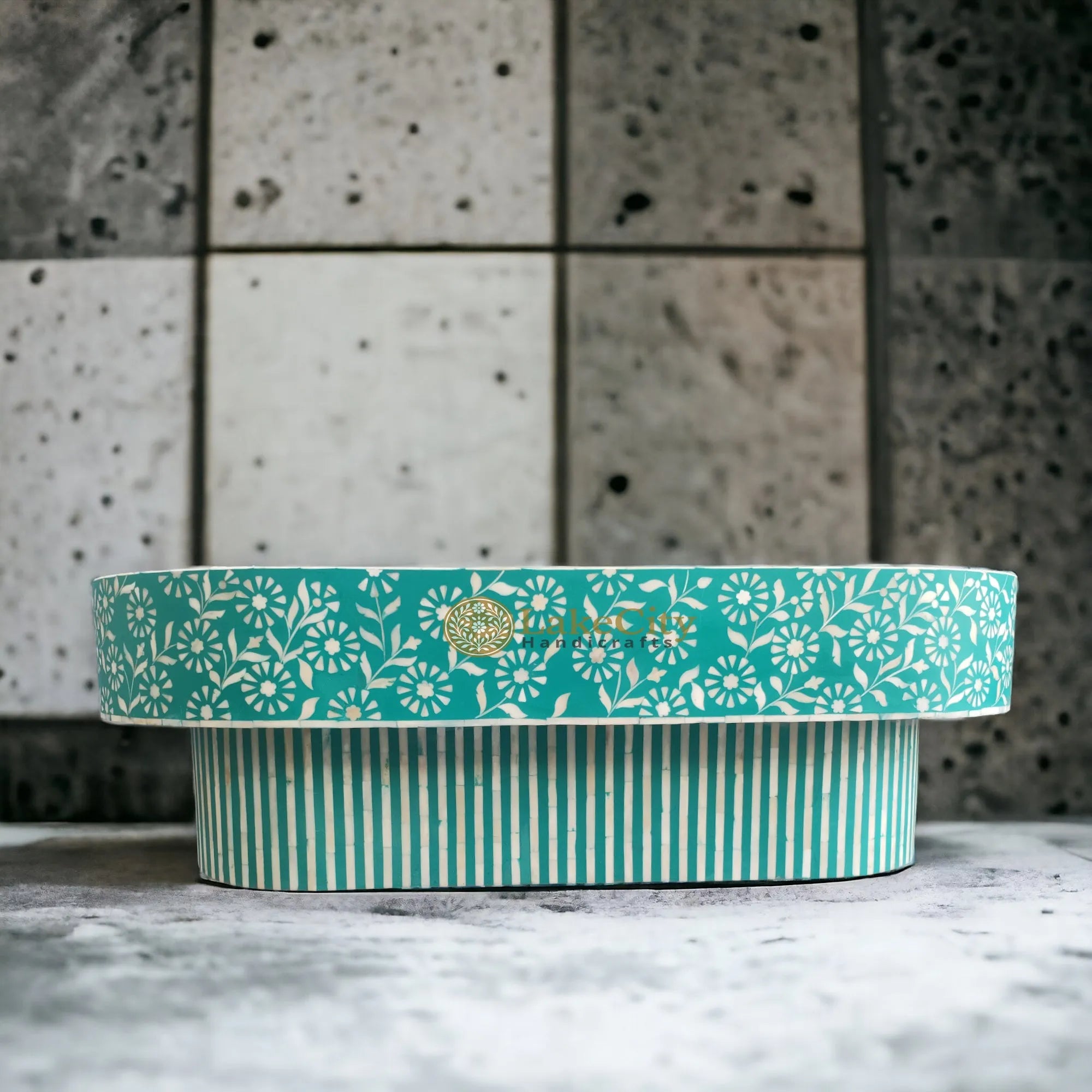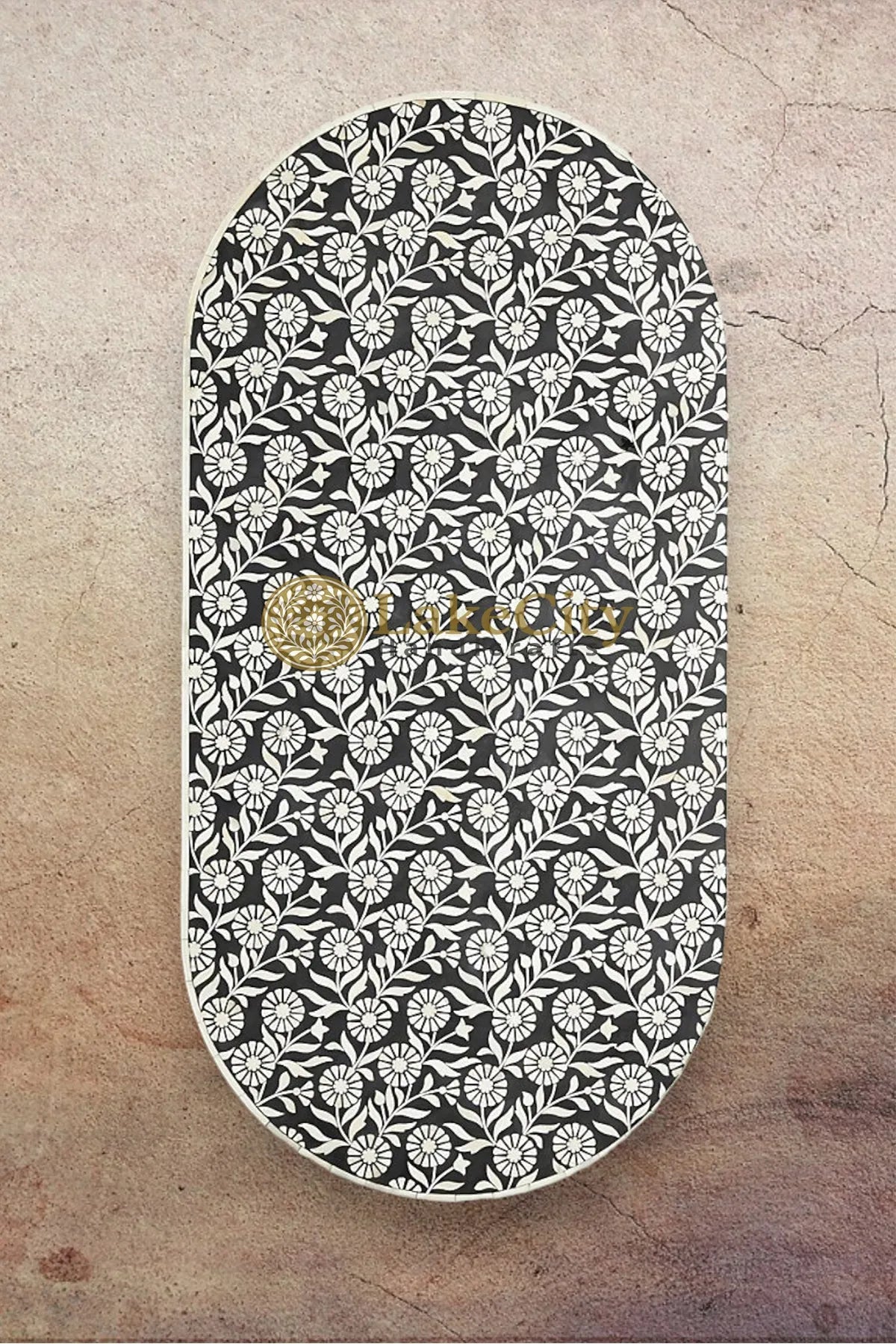 Since the days of ancient Egypt, craftsmen have been using inlaid bone to decorate furniture surfaces, and for good reason: it embodies a natural sheen that adds instant luxury to any space. Handcrafted using the same centuries-old technique, this coffee table features an intricately patterned floral motif and a contrasting striped base rendered in exquisite resin and bone inlay.
