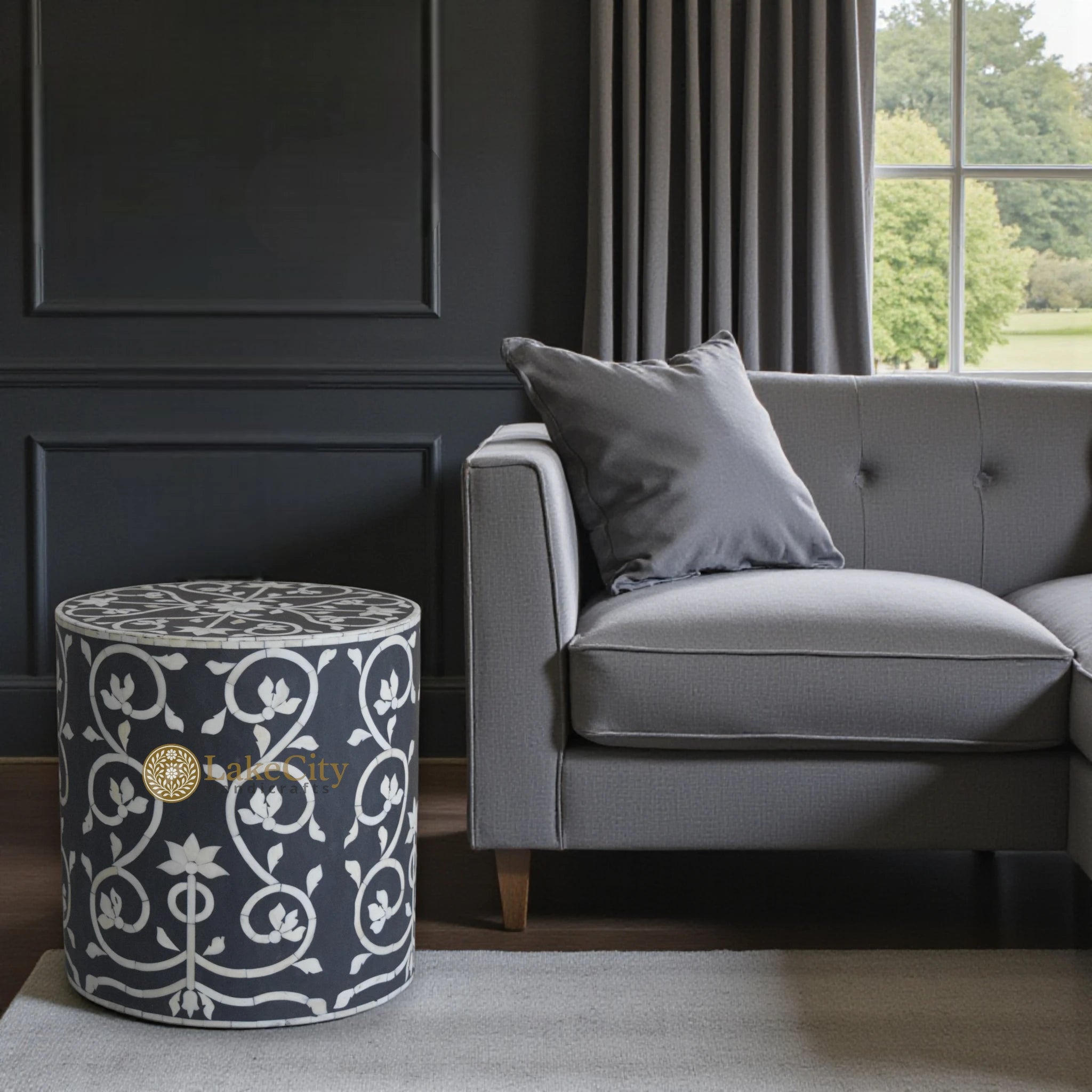 Each Bone Inlay stool has been laboriously handcrafted in India by skilled artisans. The traditional techniques are offset by the contemporary design and offer a unique focal point for your home. Made from bone inlay, resin composite, and a solid wood frame. Due to the handcrafted nature of these products, no two will be the same, making each one unique.