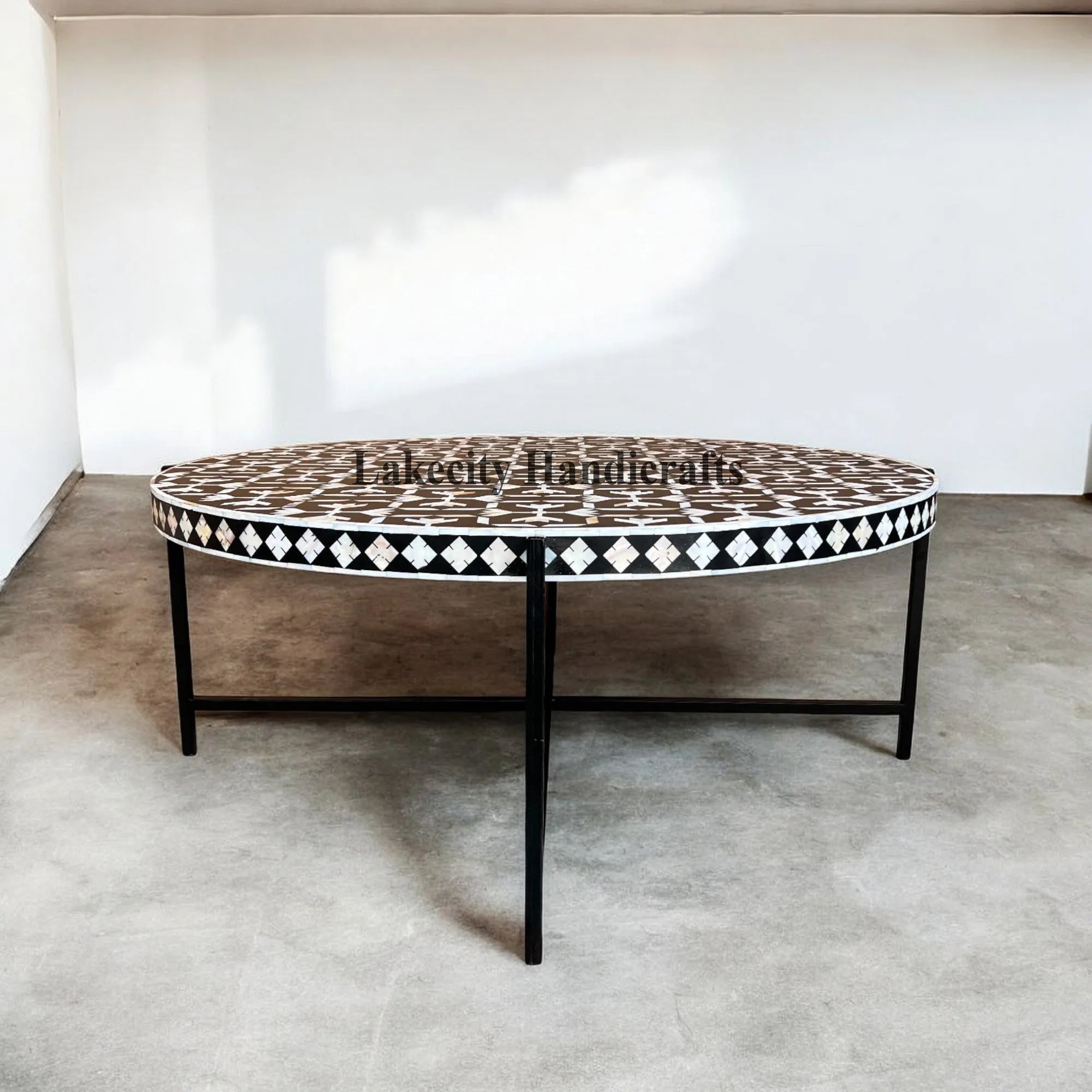 Smartly designed coffee table which is more than just mere tables in the corner. The black touch on the metal makes it an attractive statement in your living room, bedroom or study. Hexagonal mop inlay on the top is more like the cherry on the top which imparts that essential wholesome look to the table.