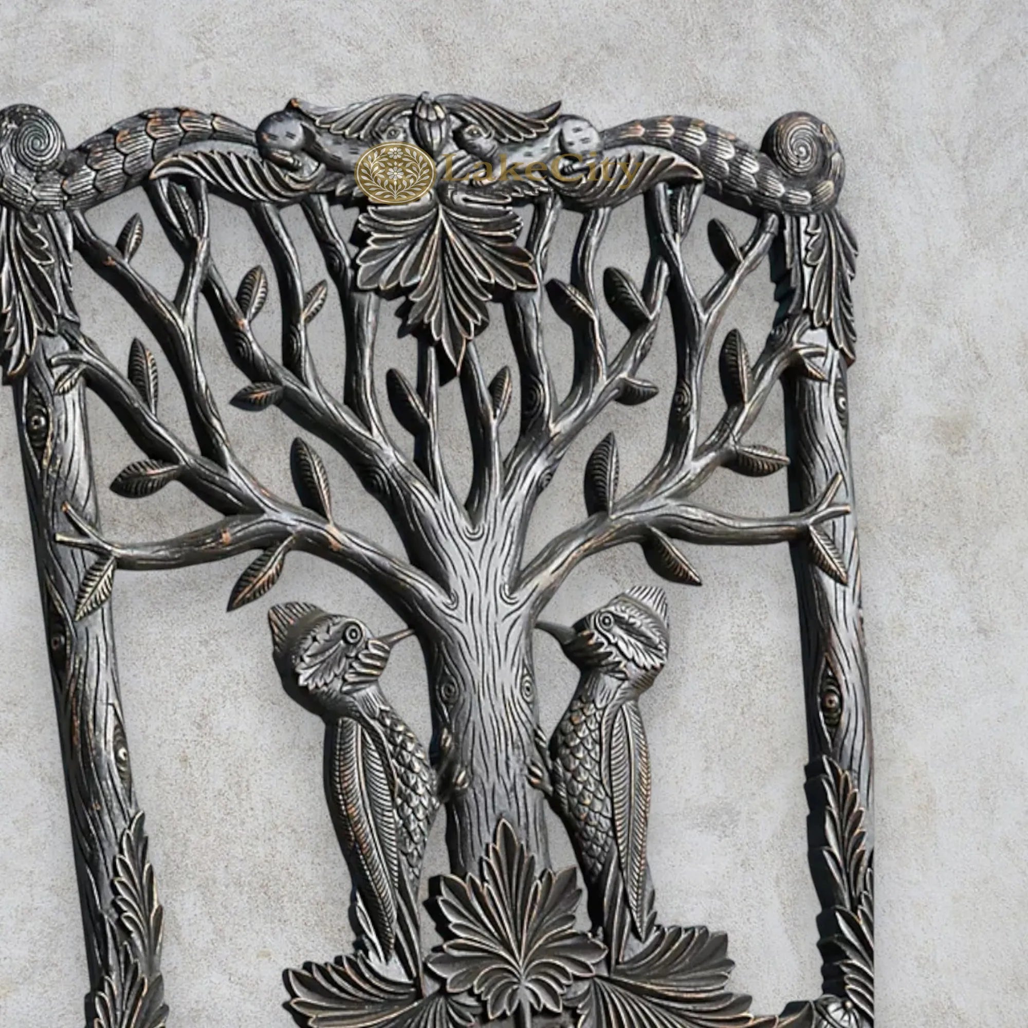 Handcarved Menagerie Woodpecker Dining Chair Black Set of 2