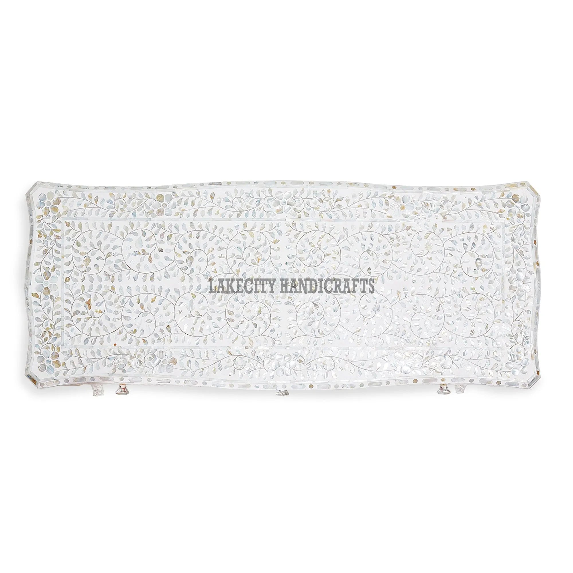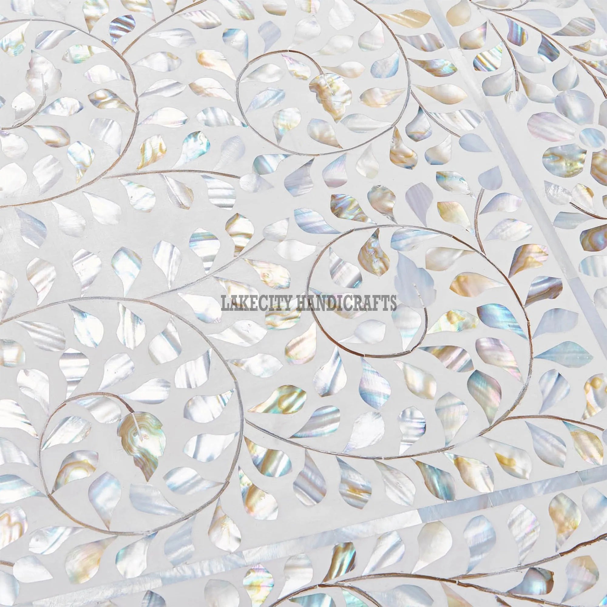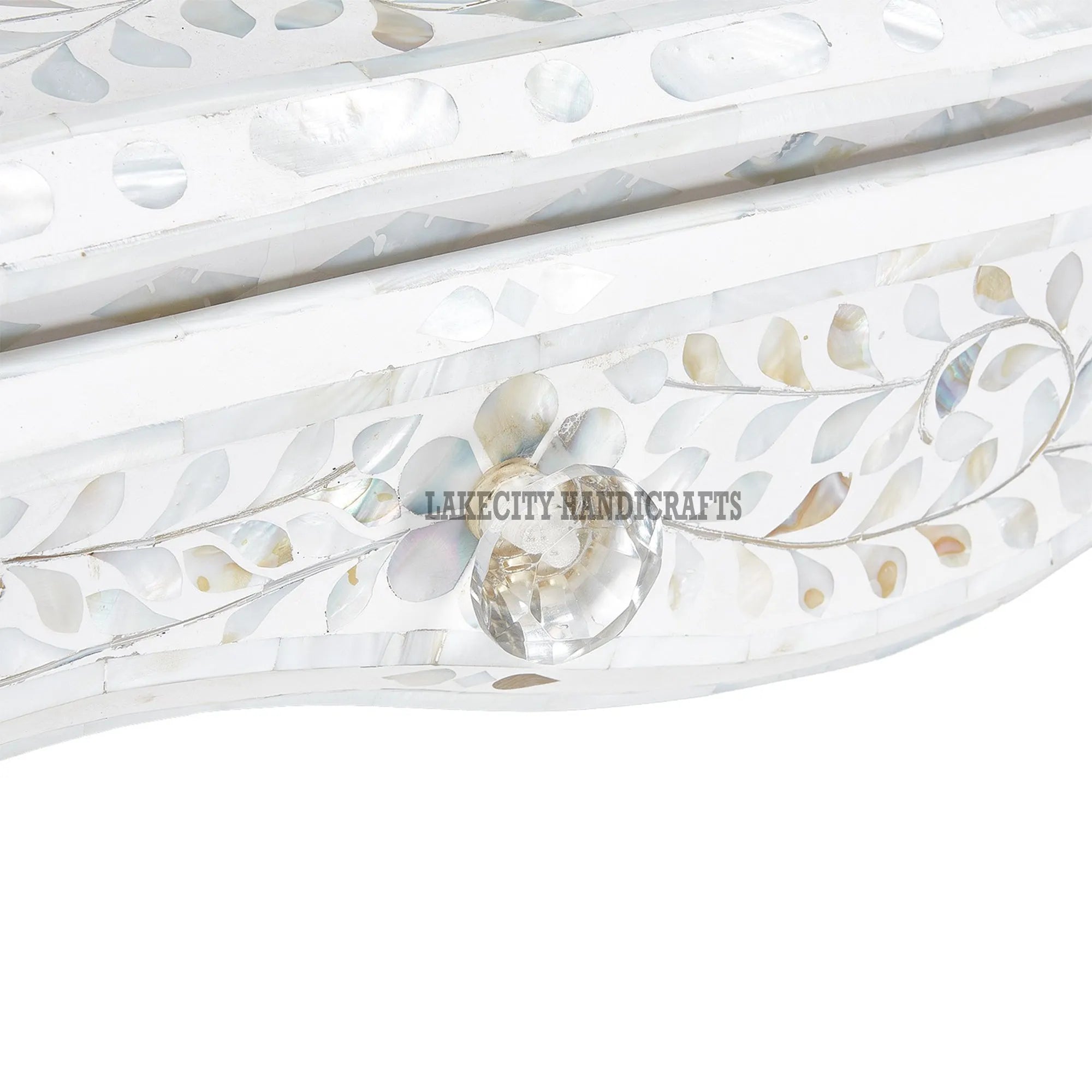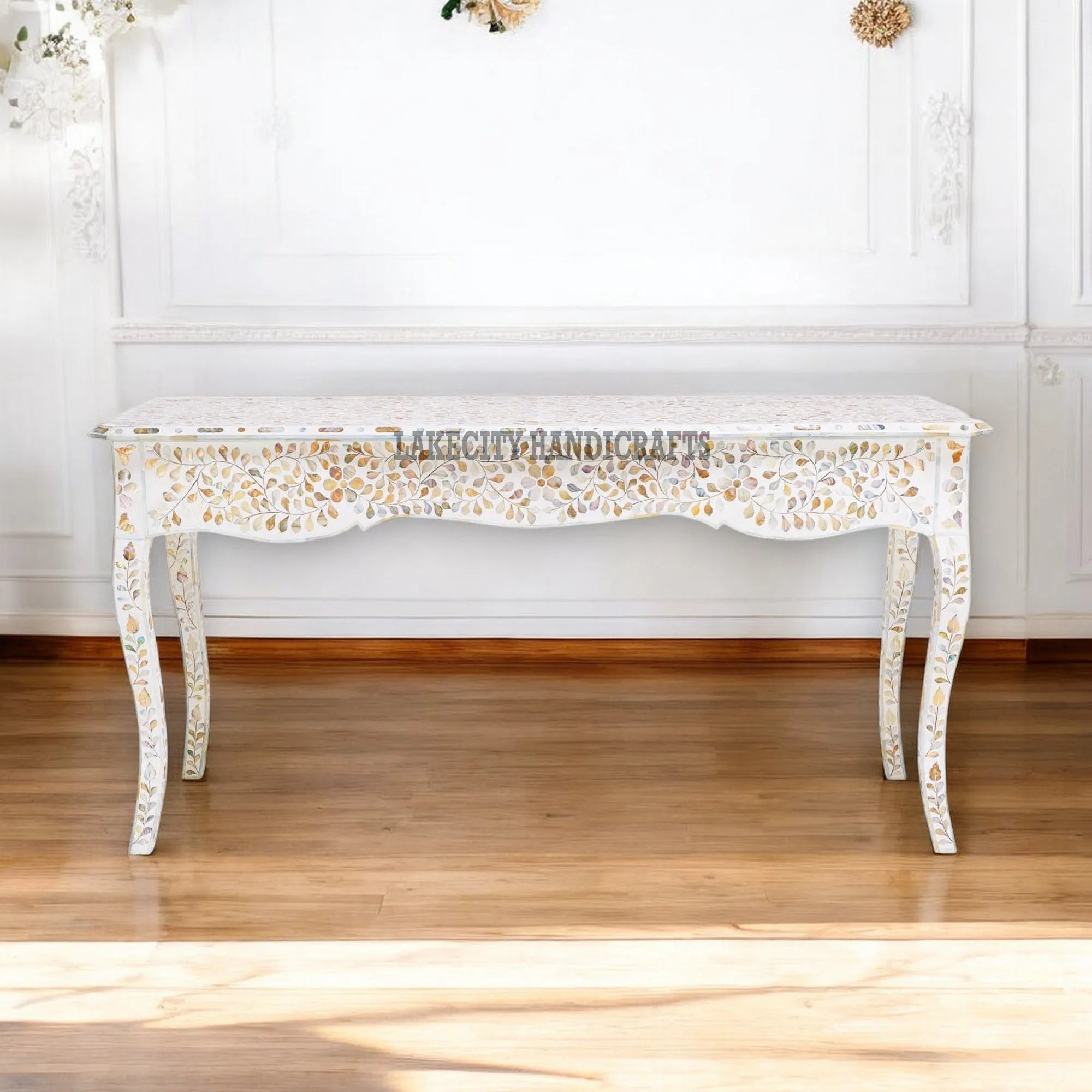 Mother Of Pearl Inlaid Long Curved Leg Desk White