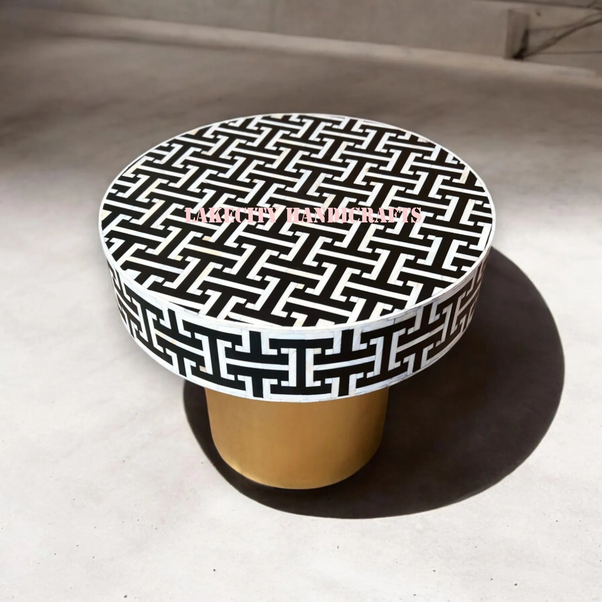 Since the days of ancient Egypt, craftsmen have been using mop inlay to decorate furniture surfaces, and for good reason: it embodies a natural sheen that adds instant luxury to any space. Handcrafted using the same centuries-old technique, this coffee table features an intricately patterned floral motif and a contrasting striped base rendered in exquisite resin and MOP inlay.