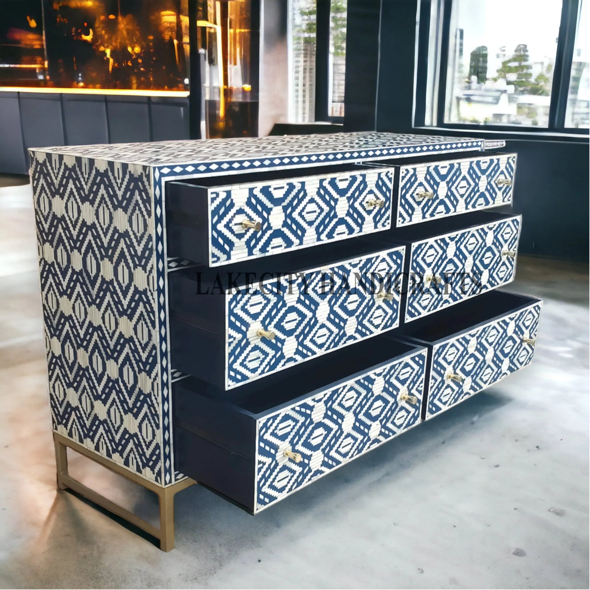 | Handcrafted bone inlay buffet reinforced with tropical hardwood |